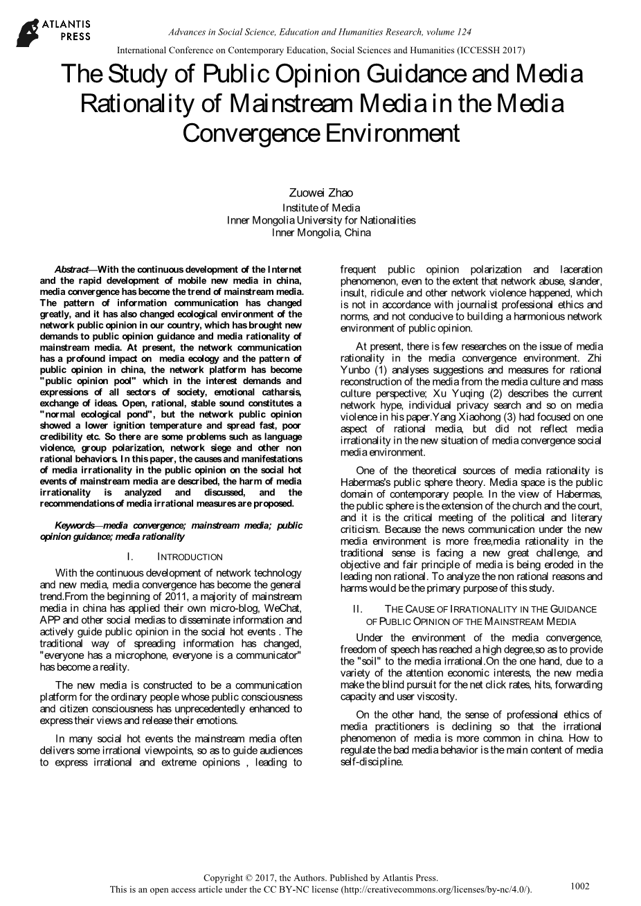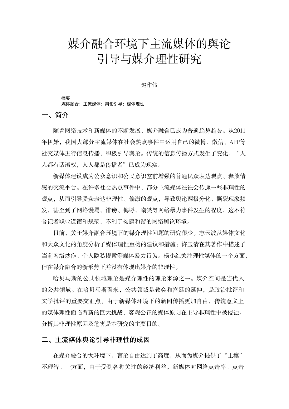 媒介融合环境下主流媒体的舆论 引导与媒介理性研究外文翻译资料