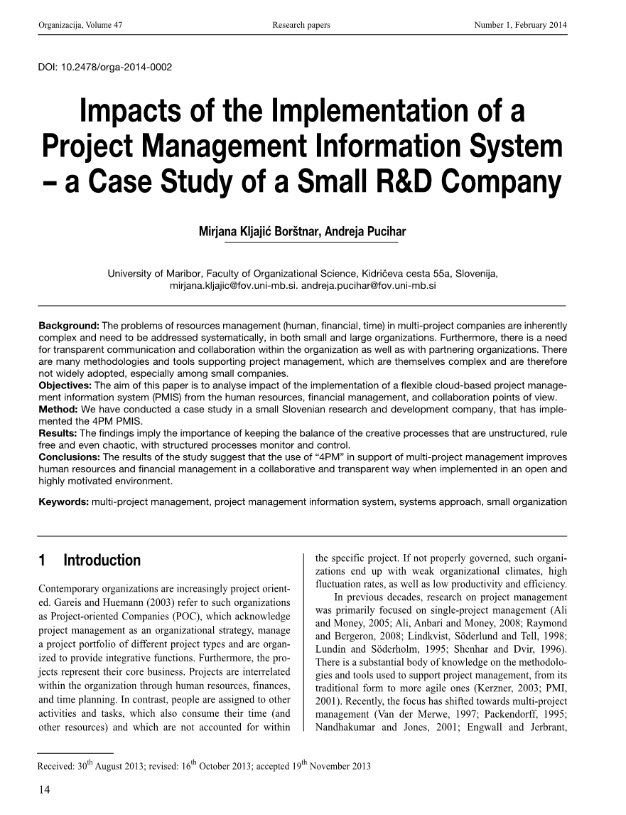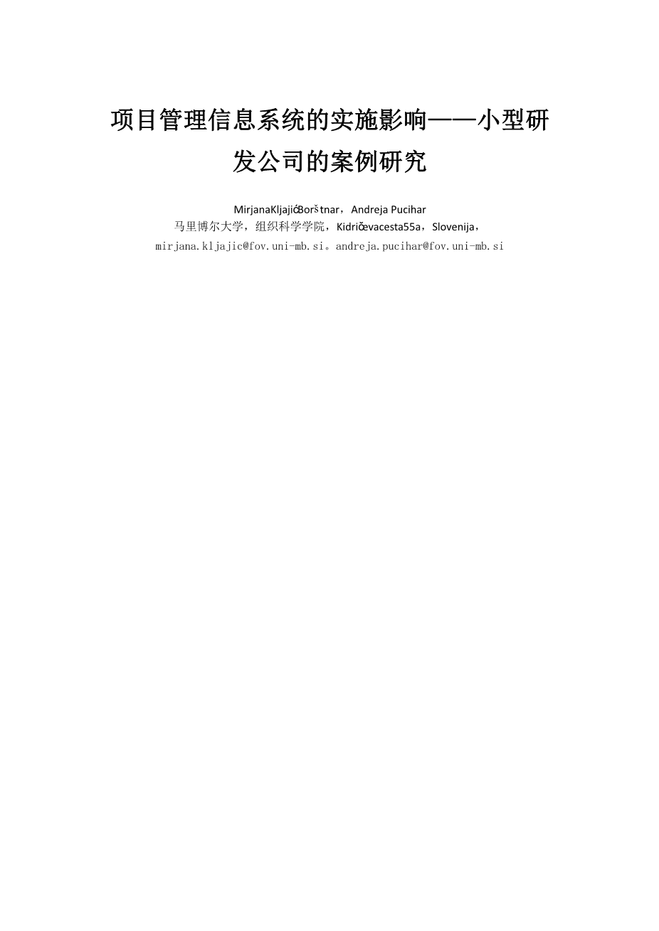 项目管理信息系统的实施影响一-一小型研 发公司的案例研究外文翻译资料