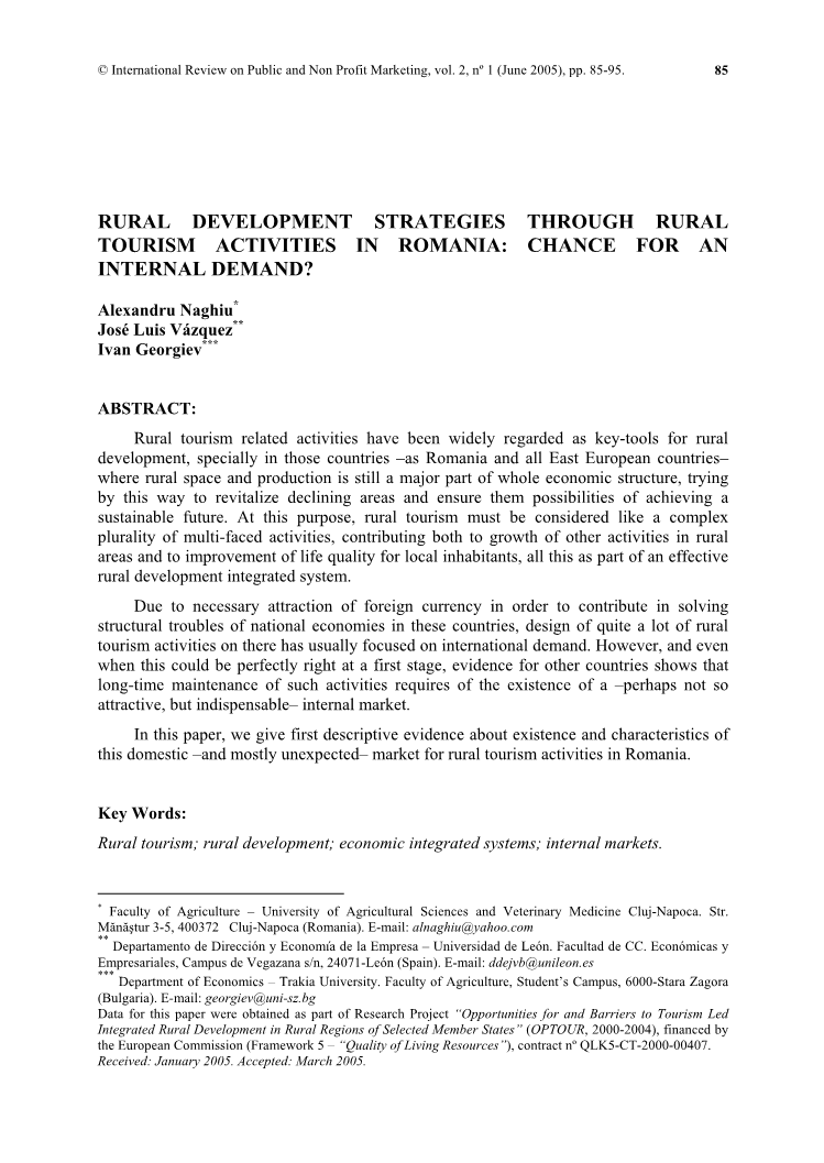 由于为了解决这些国家国民经济的结构性问题,需要吸引必要的外汇,因此在这些国家设计的相当多的乡村旅游活动,通常都以国际需求为重点。然而,即使在第一阶段这可能是完全正确的,其他国家的证据表明,要长期维持这种活动,就必须存在一个也许不是那么有吸引力,但却是必不可少的内部市场。这篇论文中,我们首先给出了罗马尼亚乡村旅游市场的存在和特征的描述性证据。