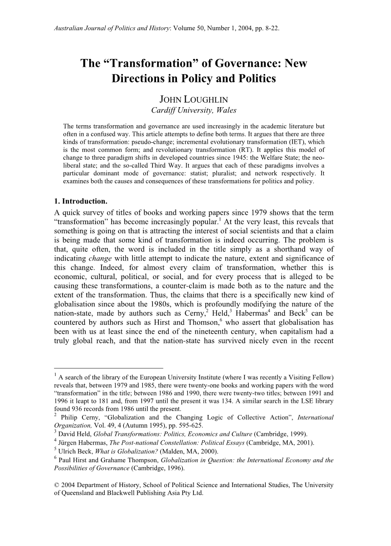 注:本段节选自原文P3-P6中“2.lsquo;Transformationrsquo; and lsquo;Governancersquo;: an attempt at clarification”部分内容
