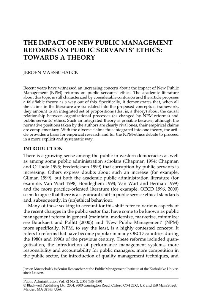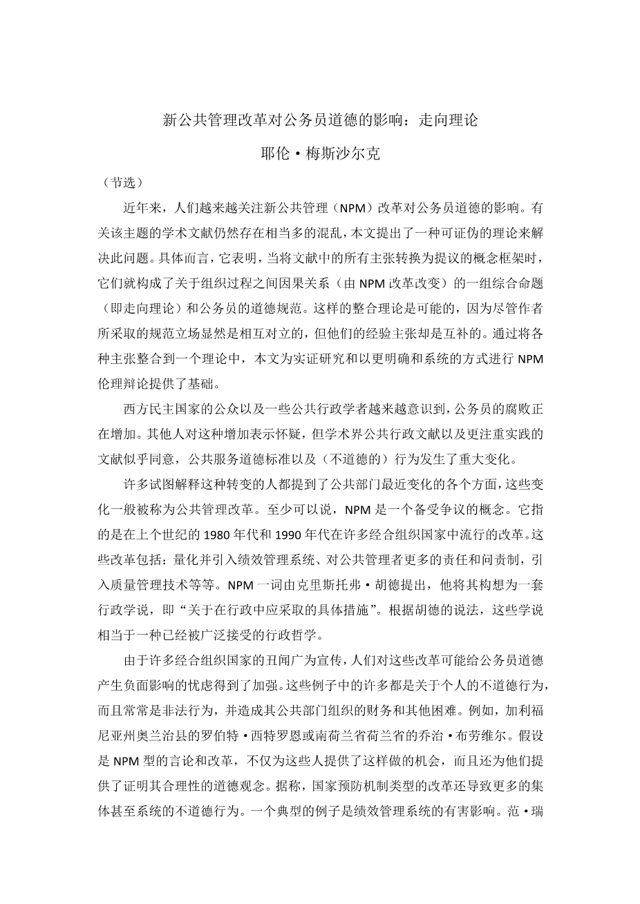 新公共管理改革对公务员道德的影响:走向理论外文翻译资料