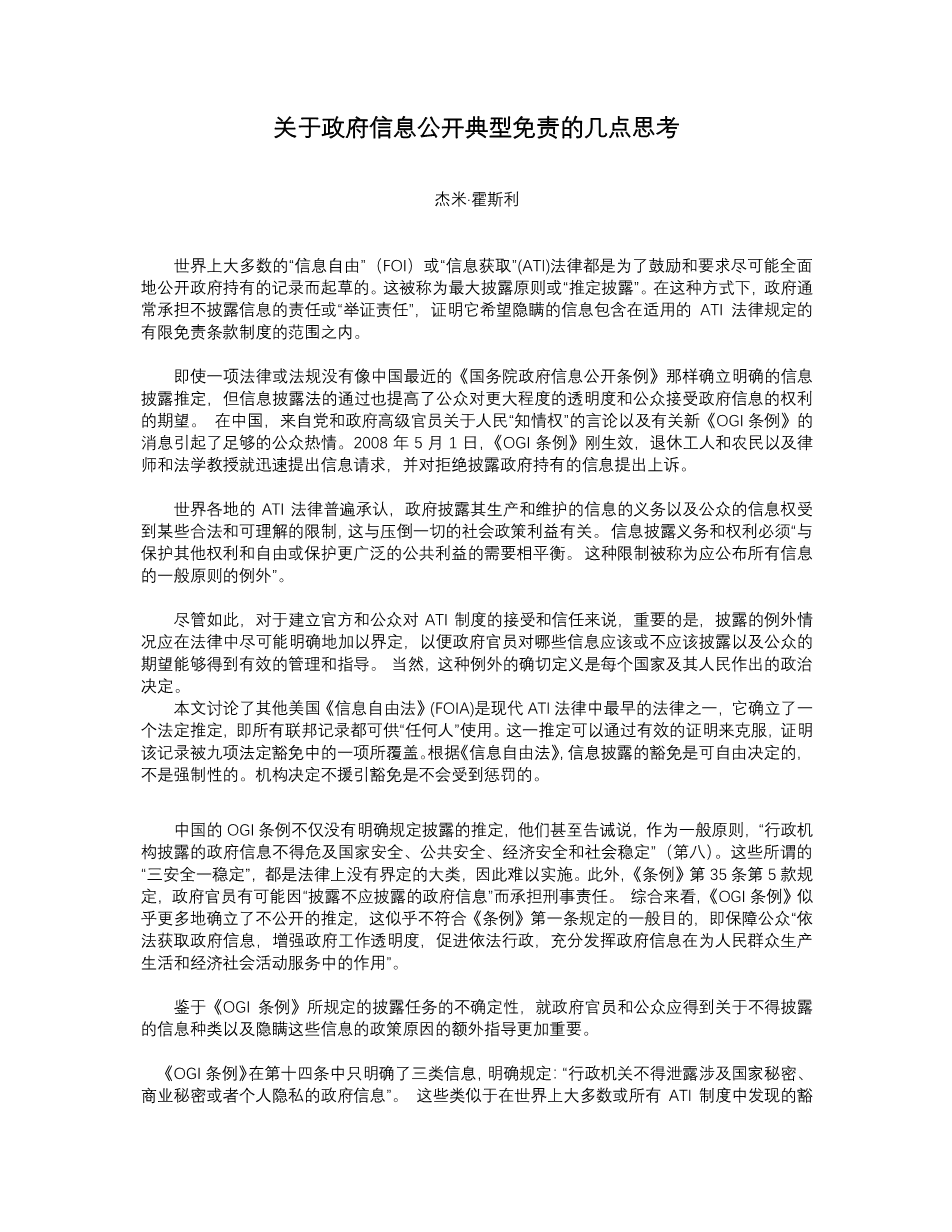 关于政府信息公开典型免责的几点思考外文翻译资料