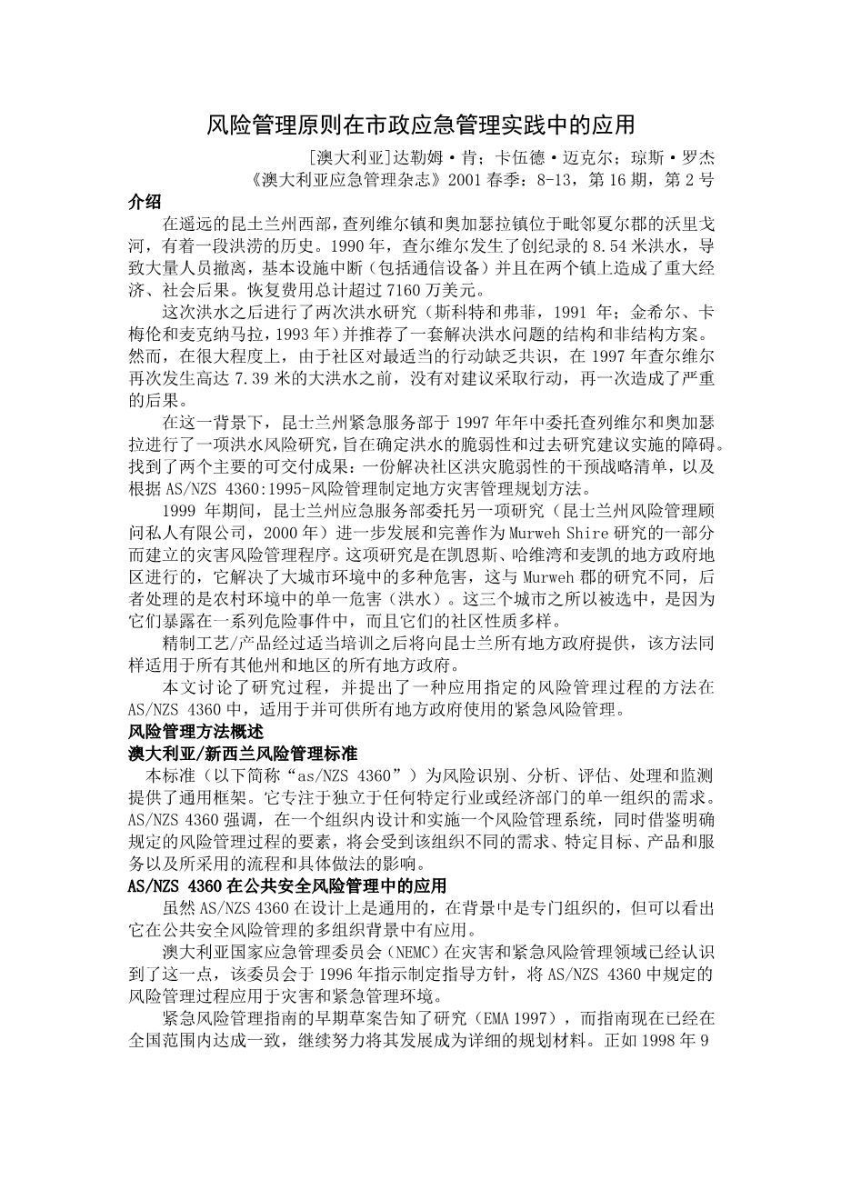 风险管理原则在市政应急管理实践中的应用外文翻译资料