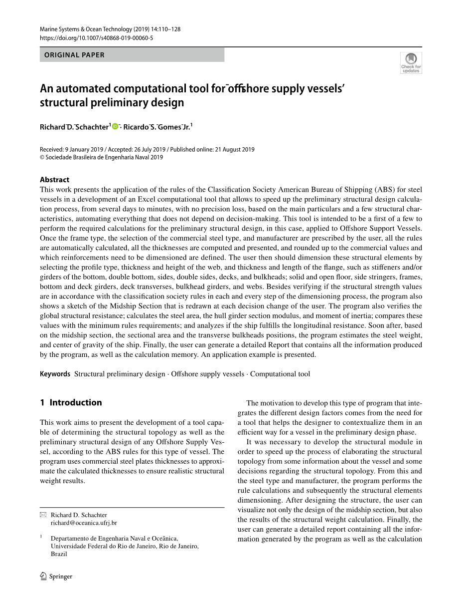 Received: 9 January 2019 / Accepted: 26 July 2019 / Published online: 21 August 2019 copy; Sociedade Brasileira de Engenharia Naval 2019