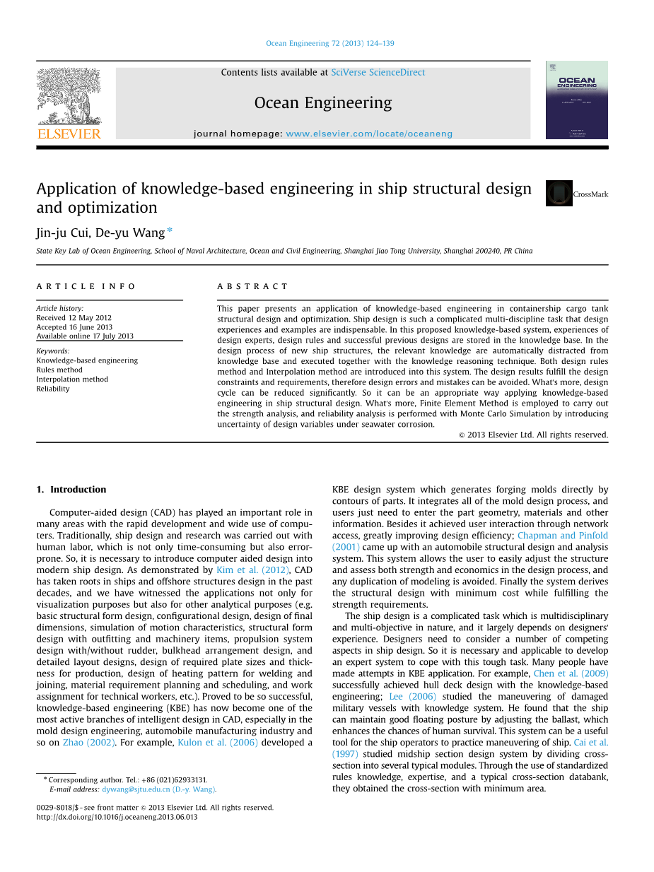 知识工程在船舶结构设计与优化中的应用外文翻译资料