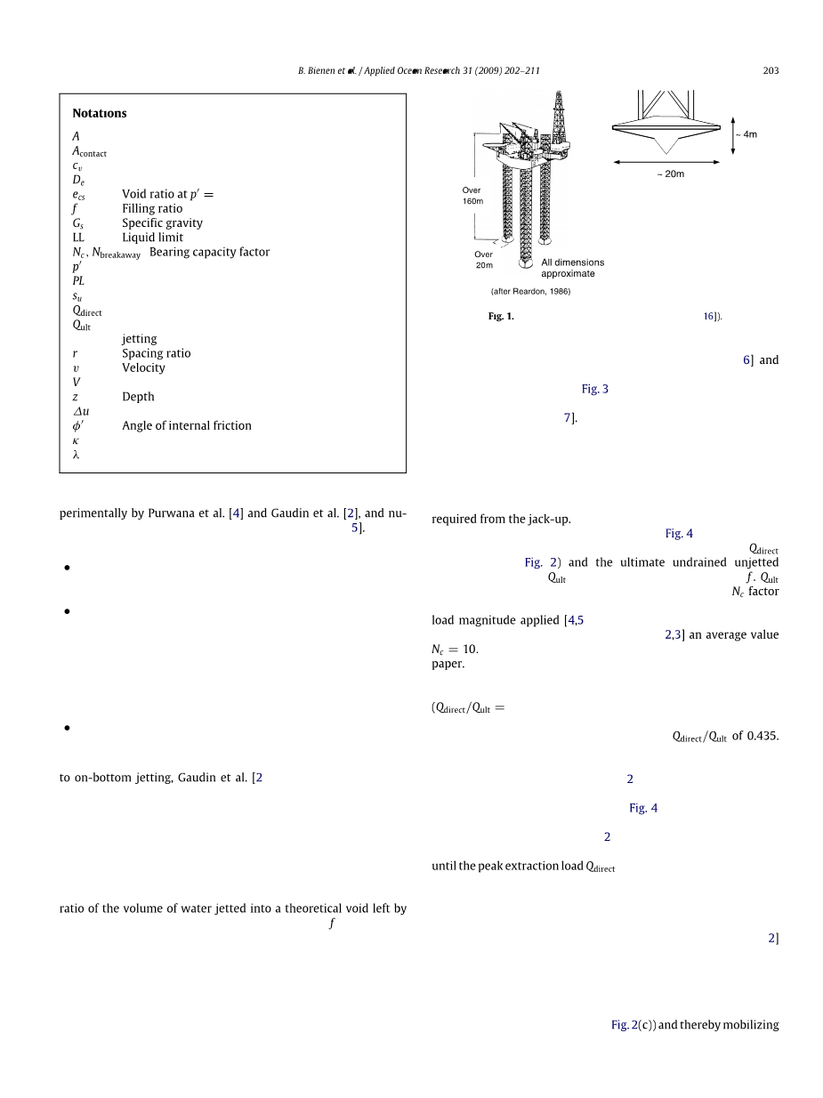 在个概念框架在图4中有详细说明,这显示出直接作用于桩靴的Qdirect和最终不排水的射流提取阻力Qult的比例,作为充填率的一个函数f。Qult可以从承载力理论使用的一个取决于操作周期长度和负载应用级[4,5]的数控因素中估计,对于非喷射状态的拔桩力测试戈丹研究过[2,3],平均值Nc=10.8已经计算完成,这也适用于本文章中的研究。