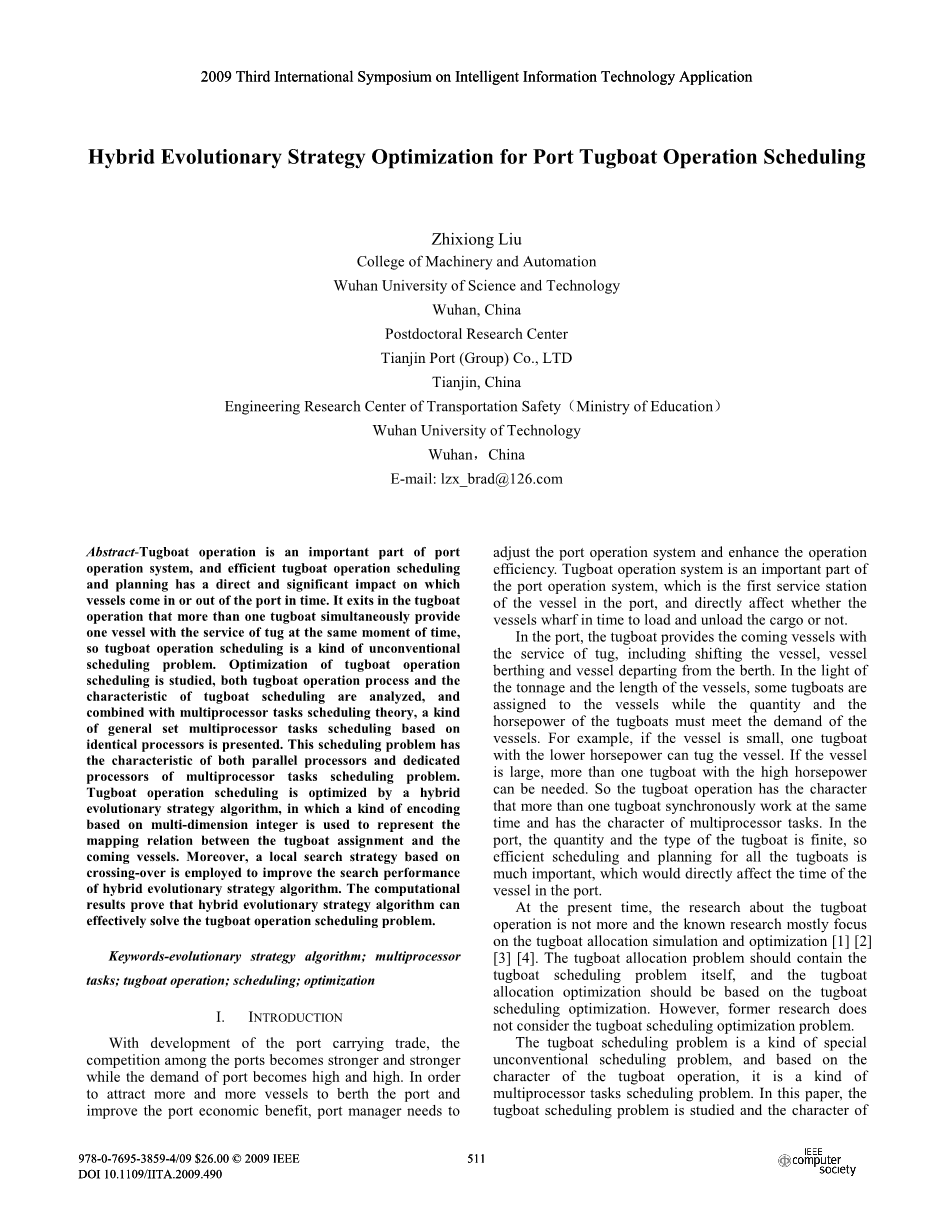 关键词:进化策略算法;多处理器任务;拖轮作业;调度;优化