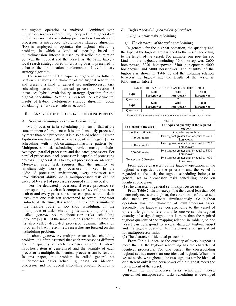 论文的其余部分是组织如下:第2节分析了拖轮调度的特点,提出了一种基于相同处理器调度的通用多处理器任务集合。第3节介绍了拖轮调度混合进化策略算法。第4节介绍了混合进化策略算法的实验结果。一些结论性的评论是在第5节。