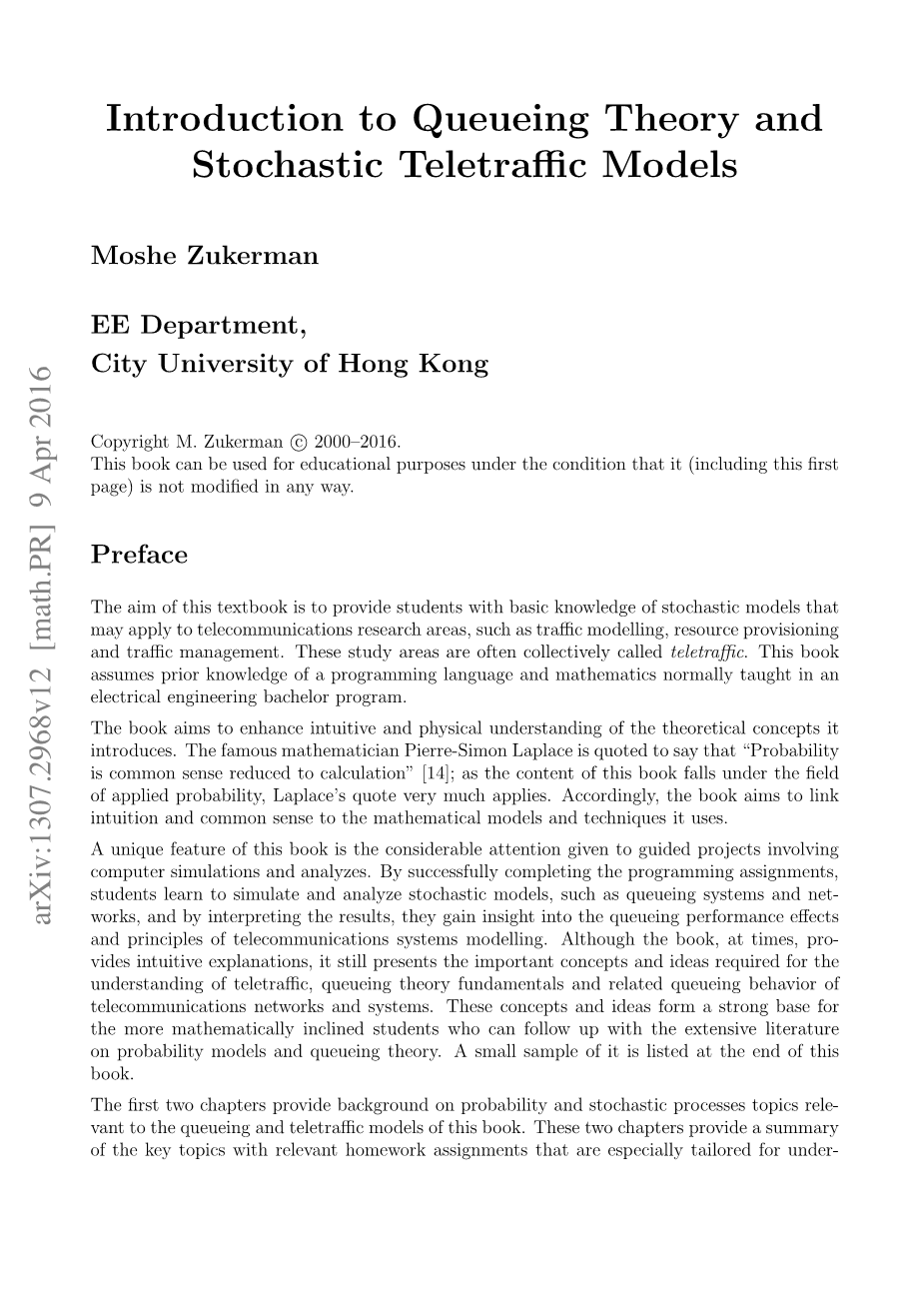 这本教科书的目的是为学生提供基本知识的随机模型,可以适用于电信研究领域,如交通建模,资源配置和流量管理。这些研究领域通常被统称为电信业务。这本书假定事先了解的编程语言和数学和完成了一般在电气工程专业的学士课程。