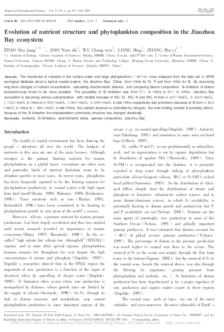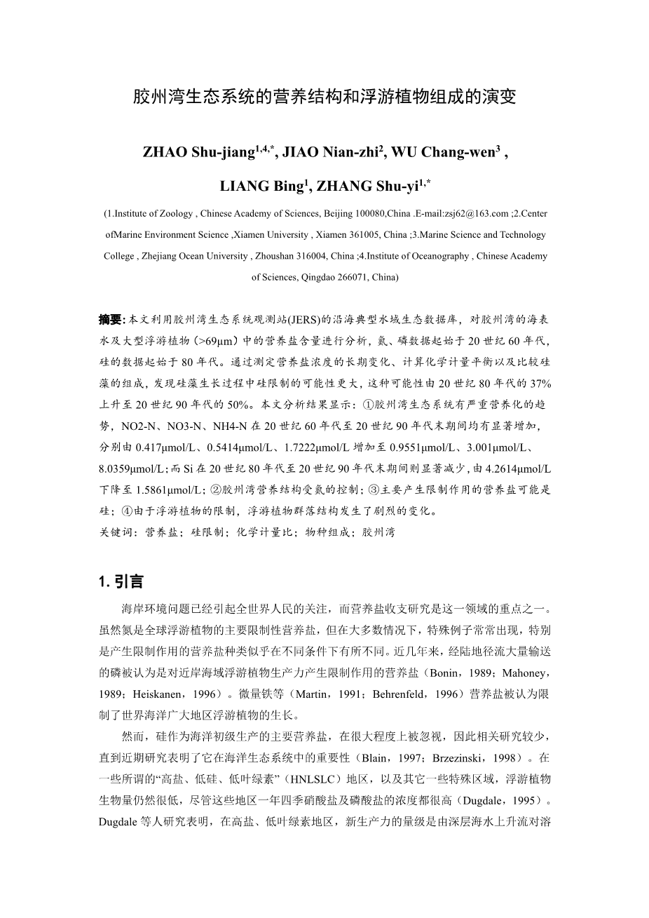 胶州湾生态系统的营养结构和浮游植物组成的演变外文翻译资料