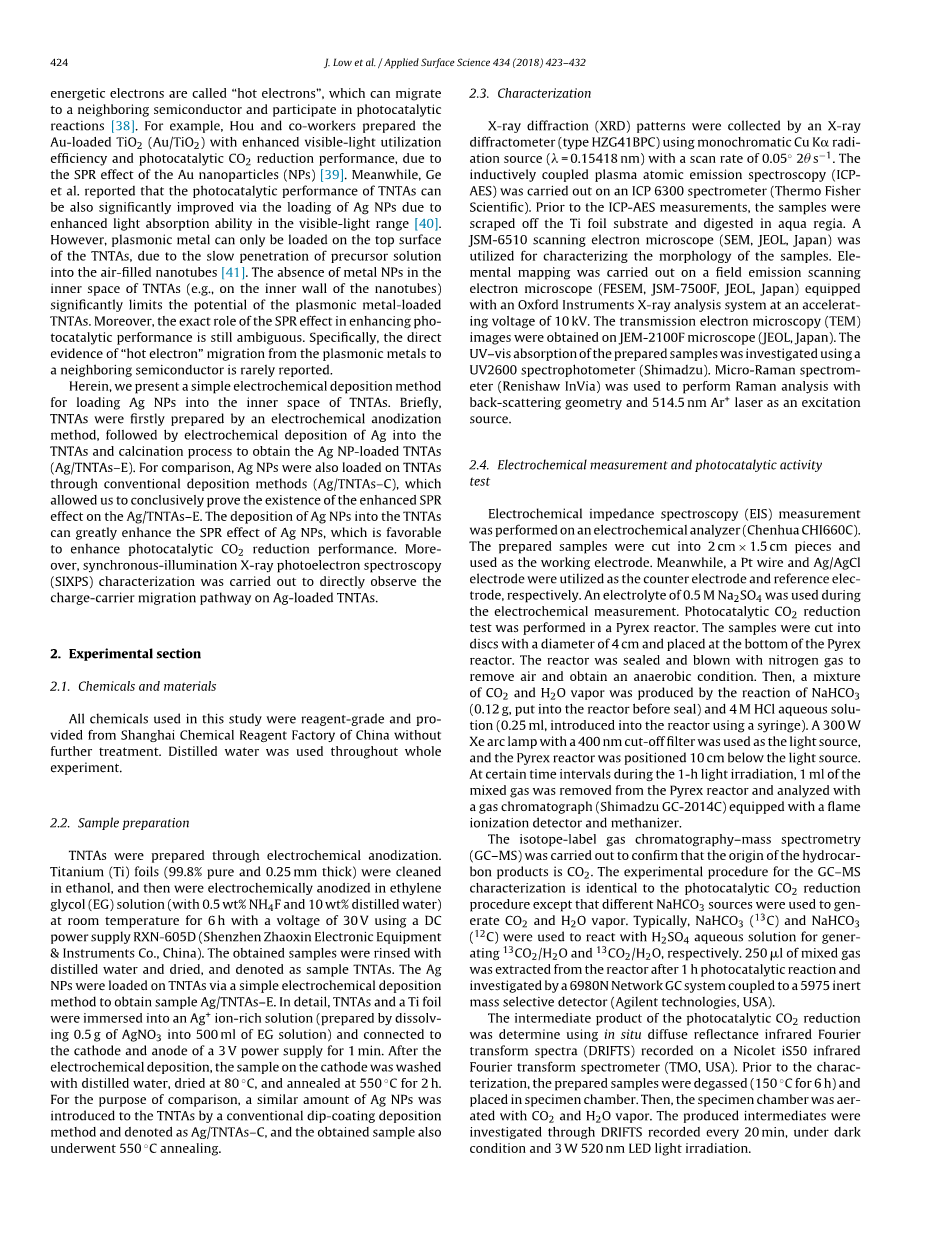直接证据和增强表面等离子共振效应 用于光催化CO2 还原的载银TiO2 纳米管阵列外文翻译资料