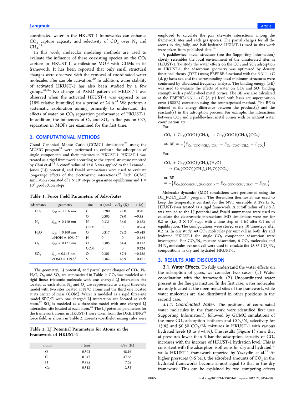 Lorentzminus;Berthelot 混合规则被采用于计算框架位置和每种气体种类中每对点--点的互相作用。用于这项工作的在干燥,充分,和半水HKUST-1中的所有原子的部分指示来自已发表的数据。