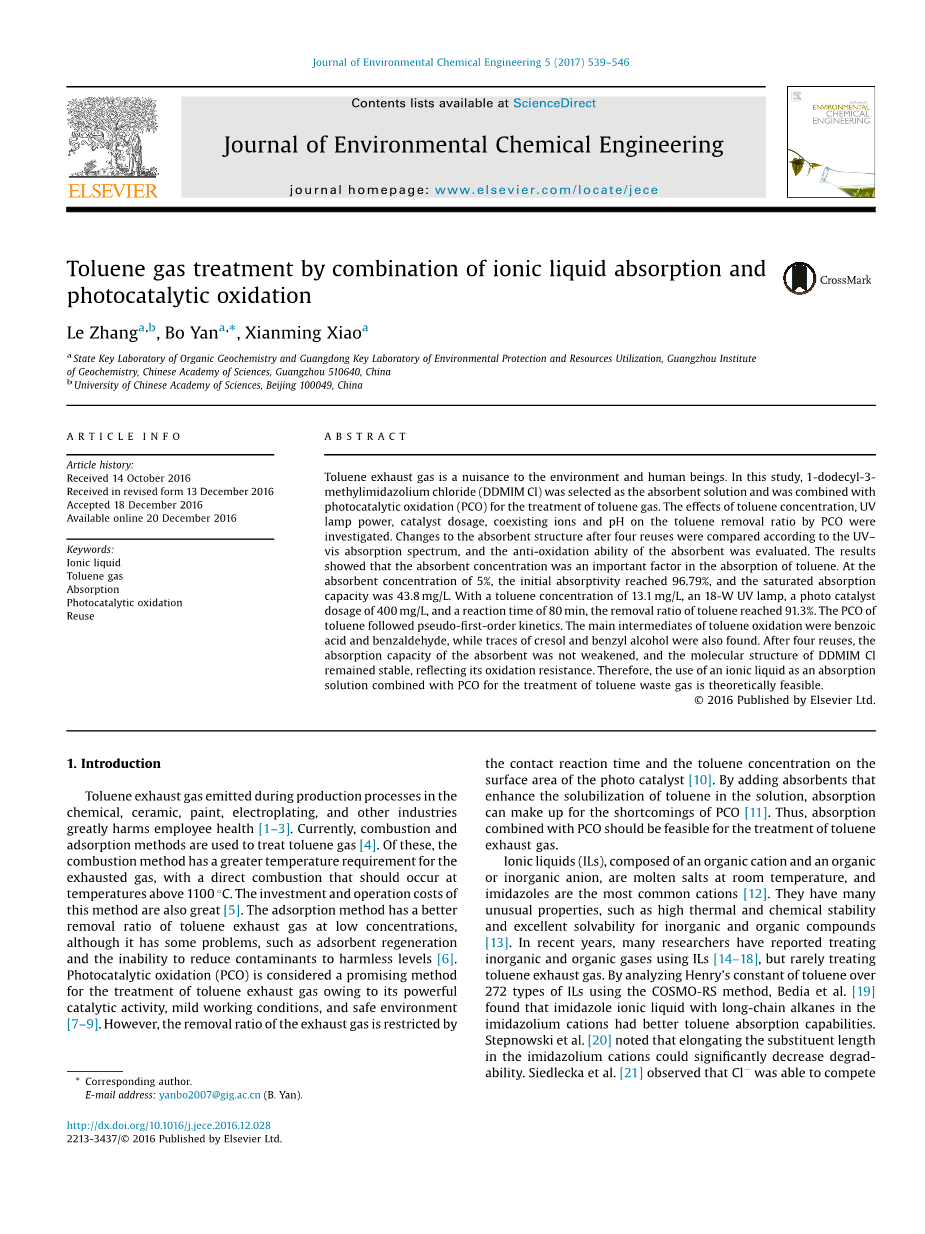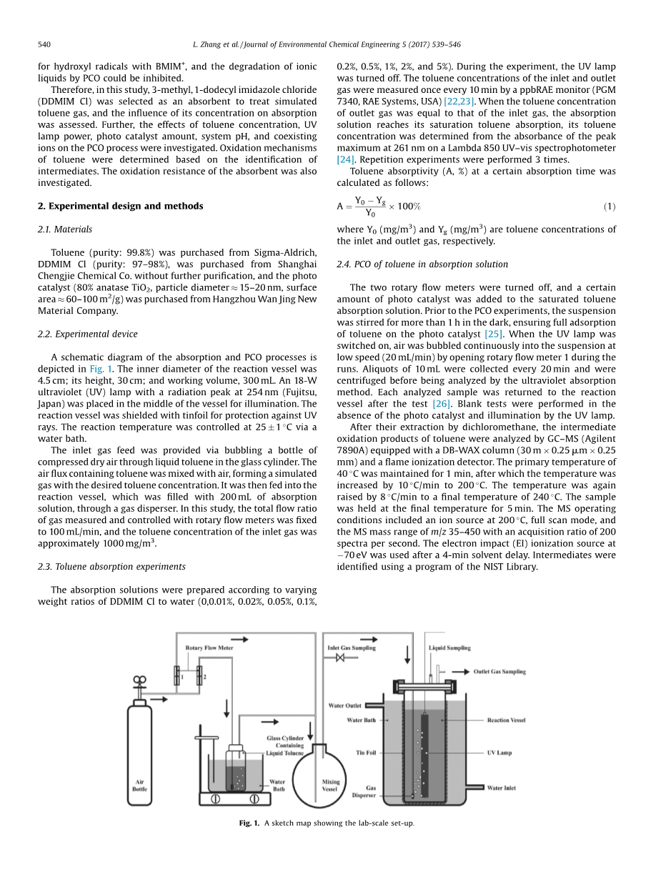 离子液体吸收与光催化氧化联合处理甲苯废气外文翻译资料