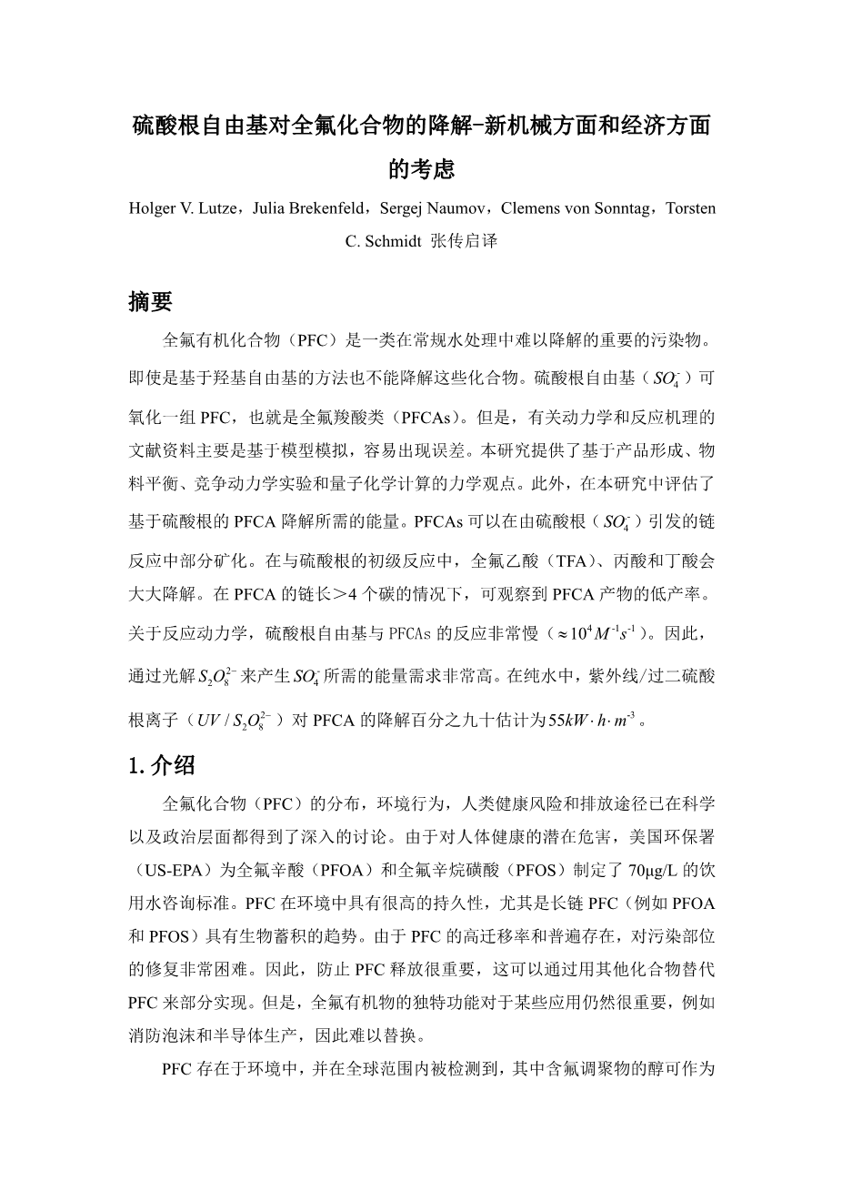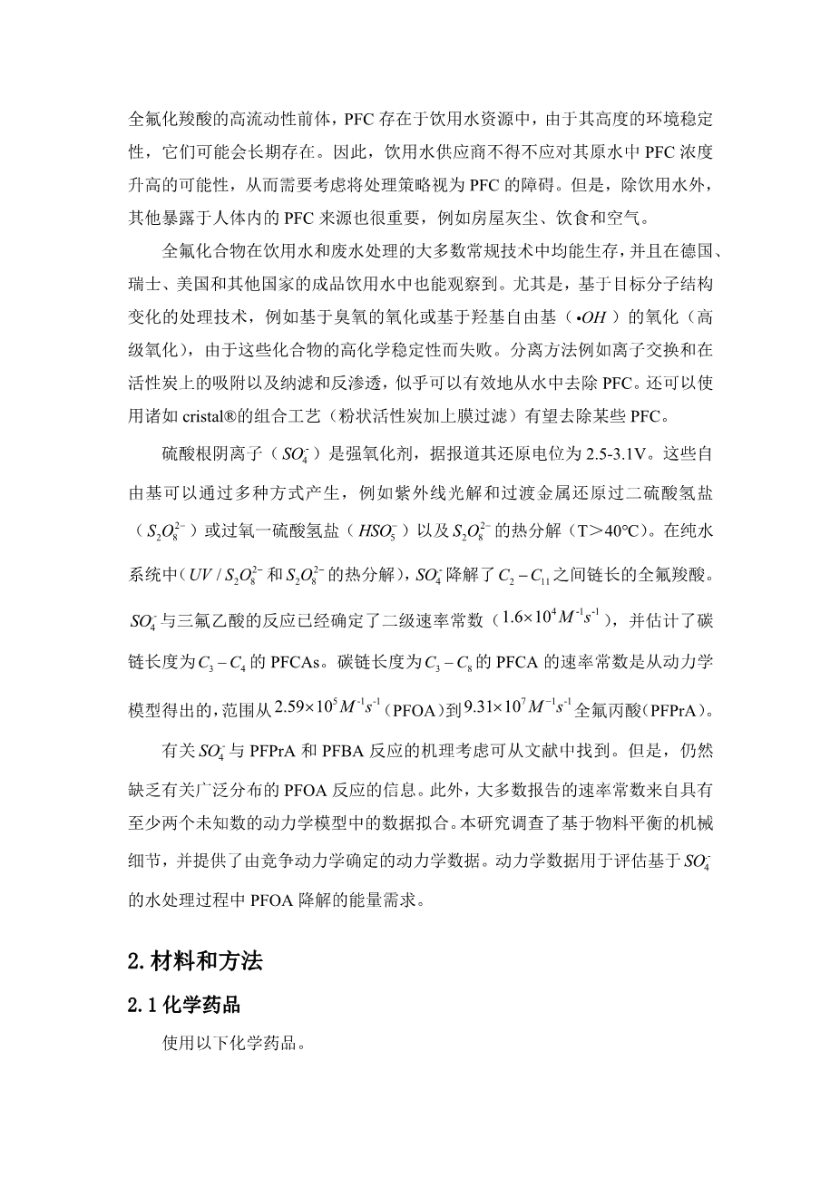 硫酸根自由基对全氟化合物的降解新机械方面和经济方面 的考虑外文翻译资料