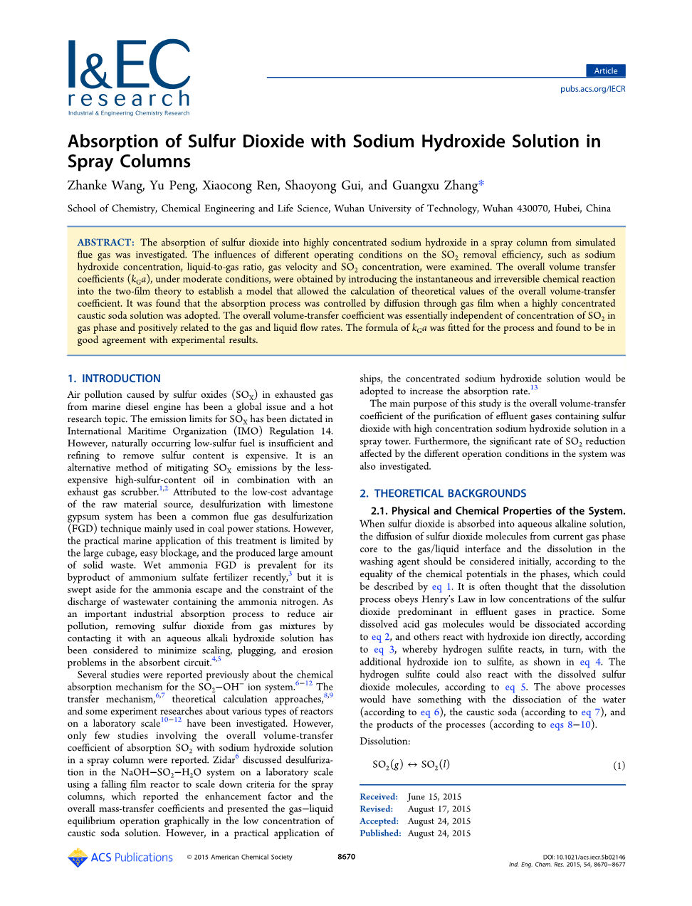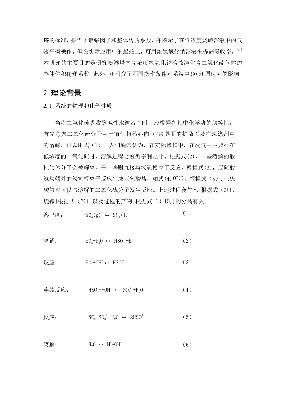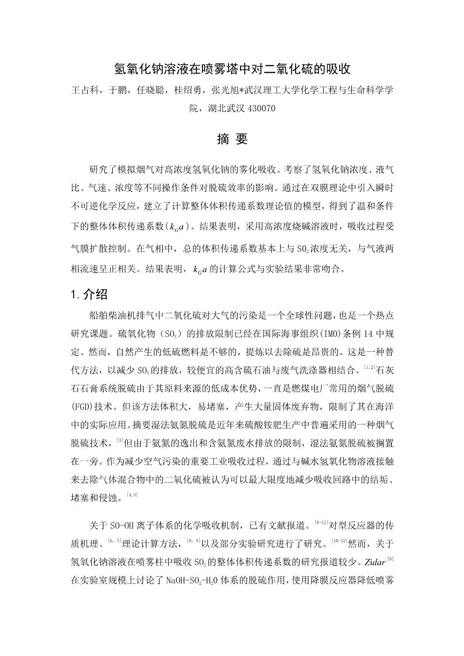 氢氧化钠溶液在喷雾塔中对二氧化硫的吸收外文翻译资料