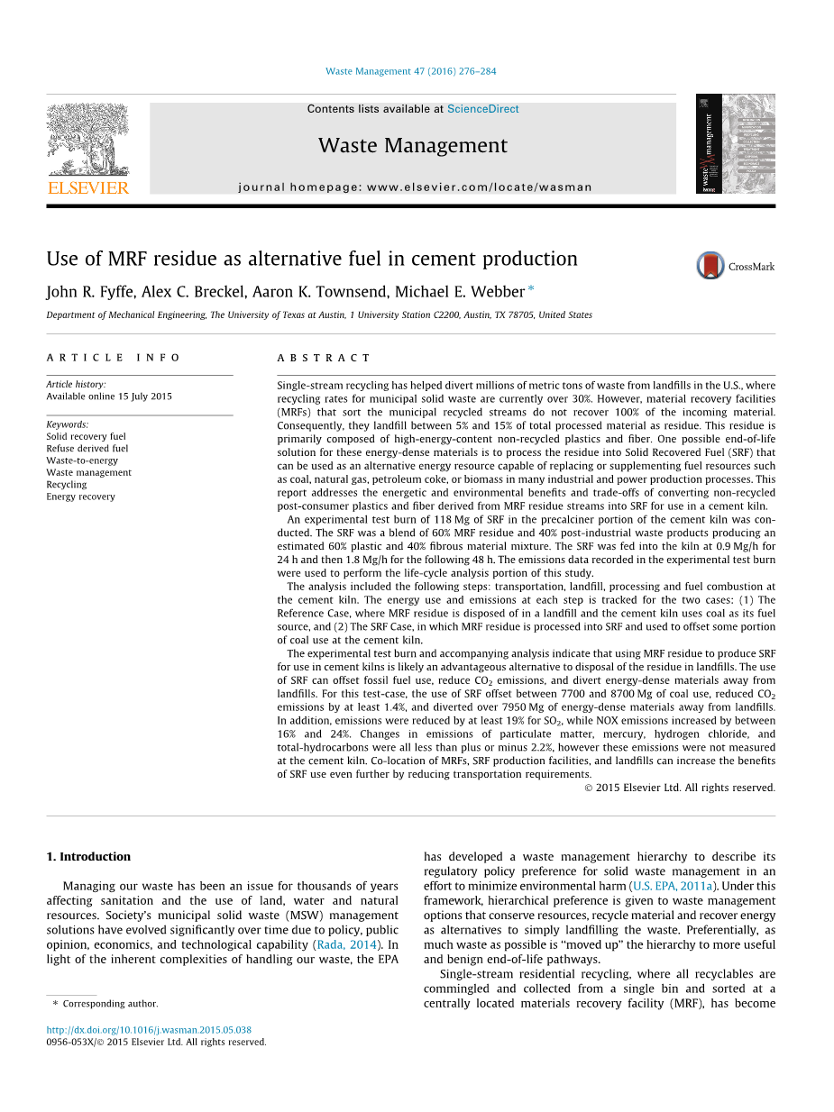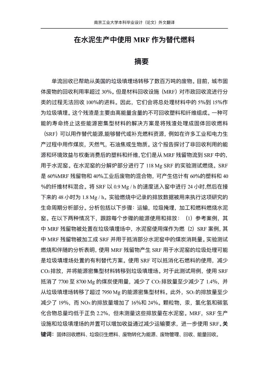 在水泥生产中使用MRF作为替代燃料外文翻译资料