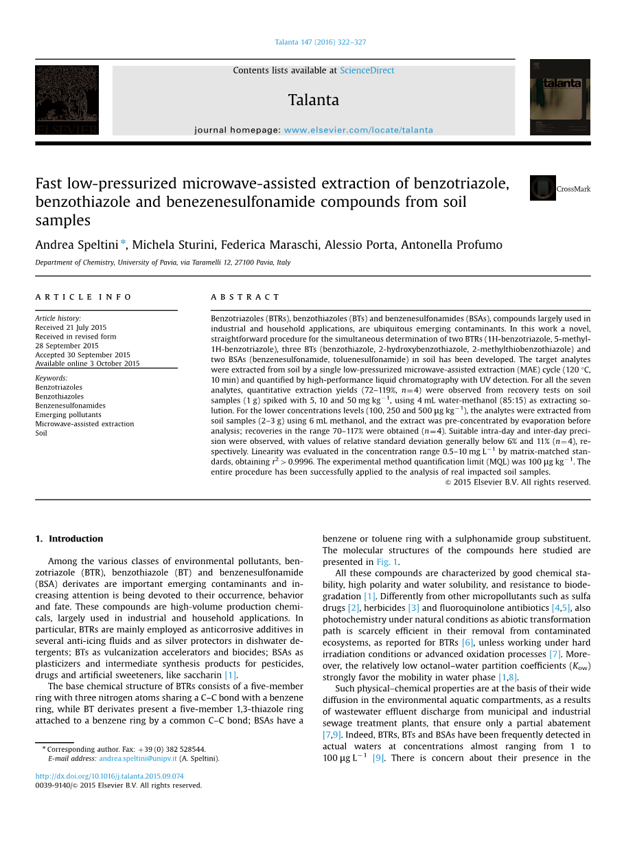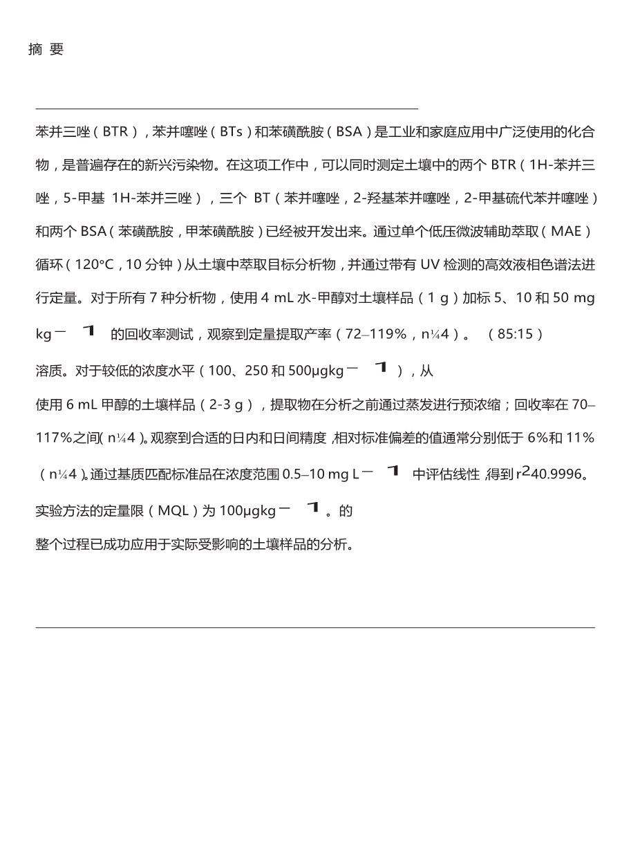 低压微波辅助快速提取土壤样品中的苯并三唑、苯并噻唑和苯磺酰胺化合物外文翻译资料