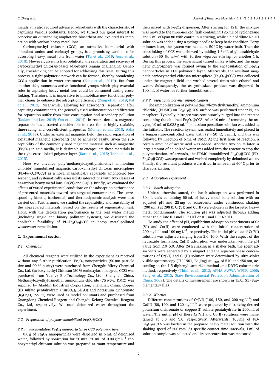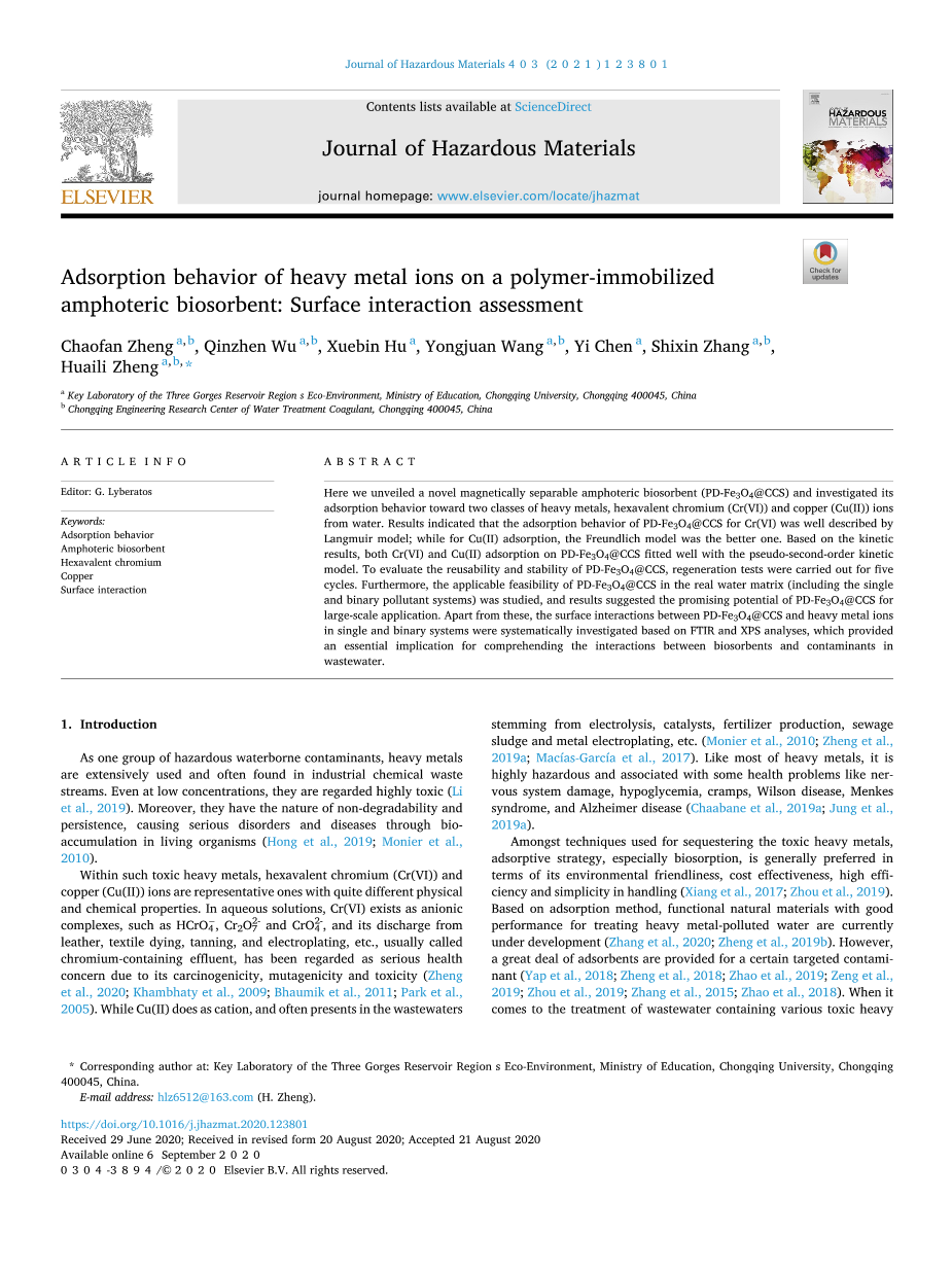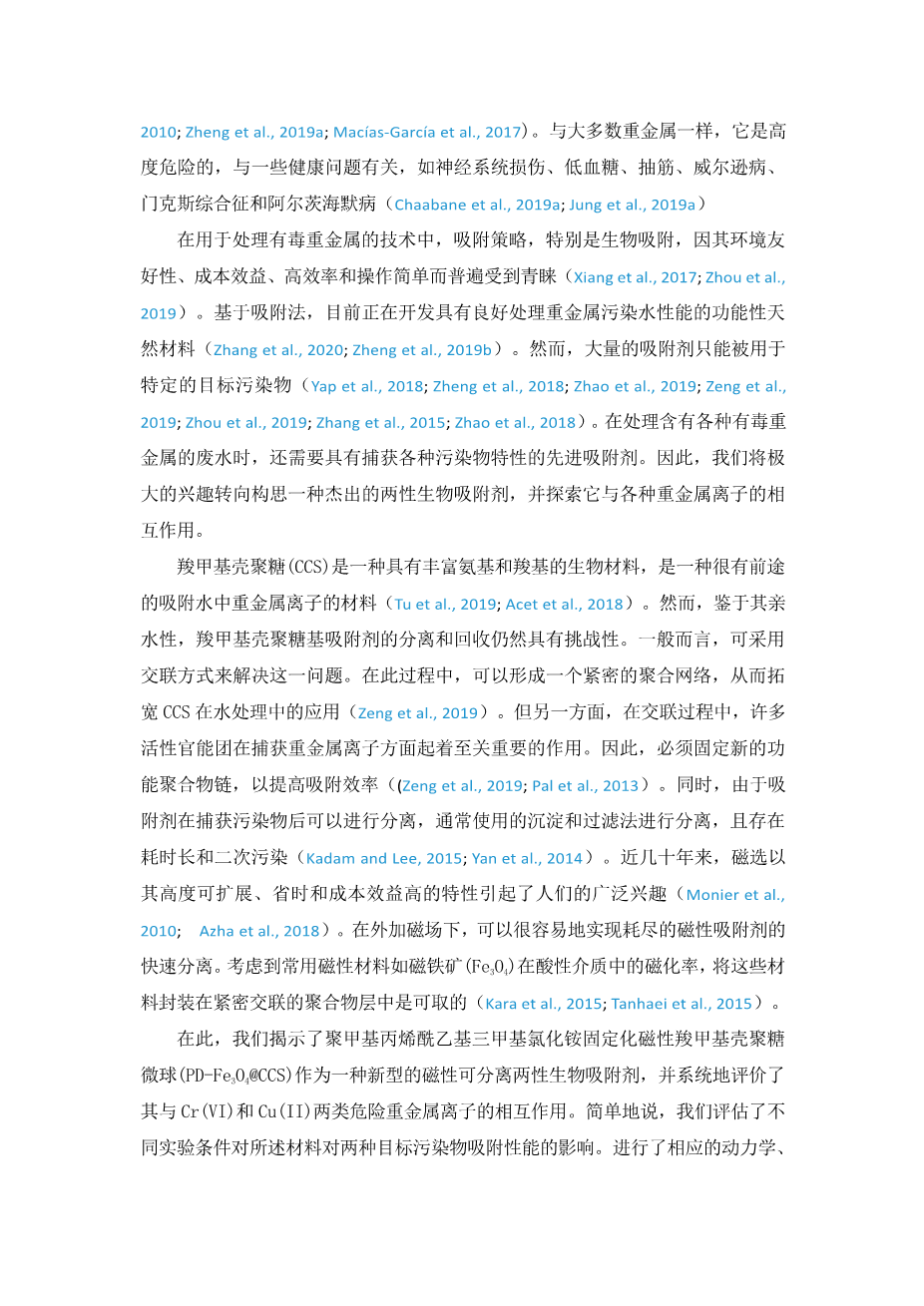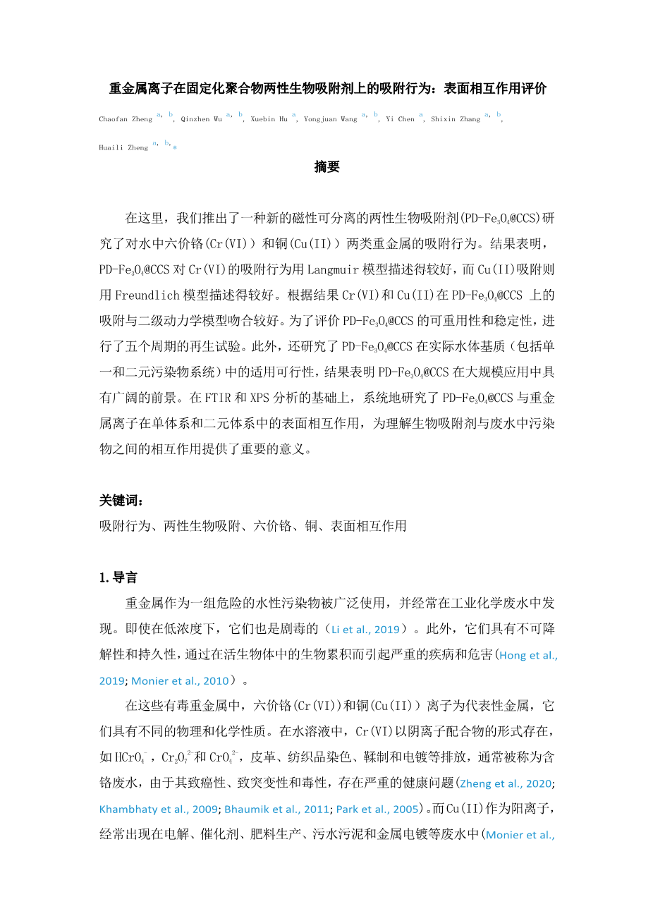 重金属离子在固定化聚合物两性生物吸附剂上的吸附行为:表面相互作用评价外文翻译资料