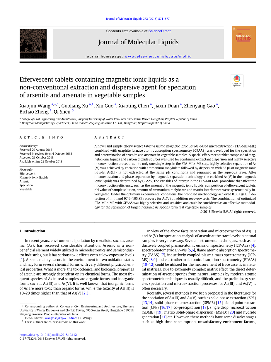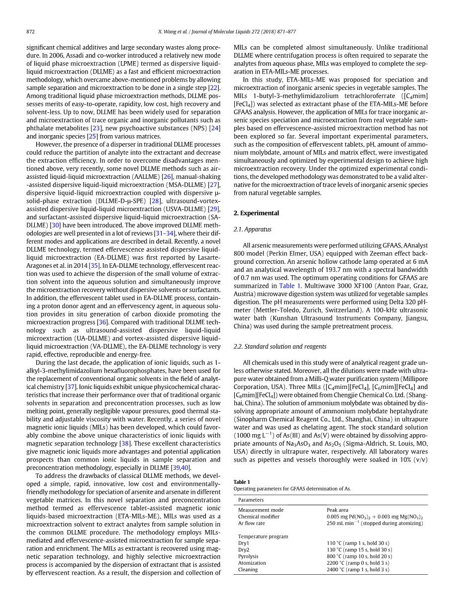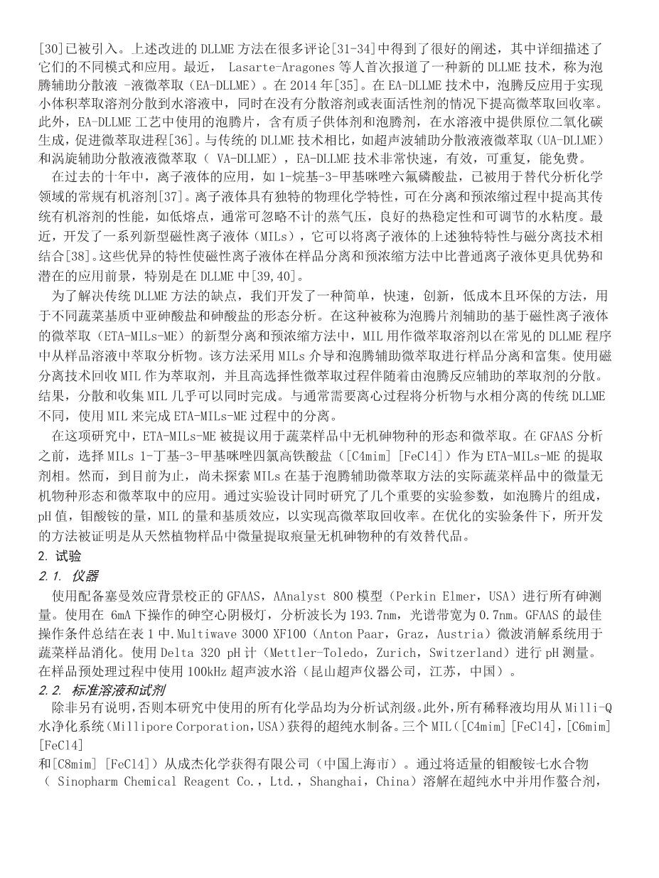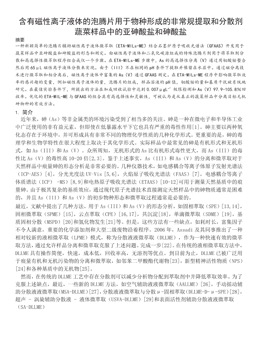 含有磁性离子液体的泡腾片用于物种形成的非常规提取和分散剂蔬菜样品中的亚砷酸盐和砷酸盐外文翻译资料