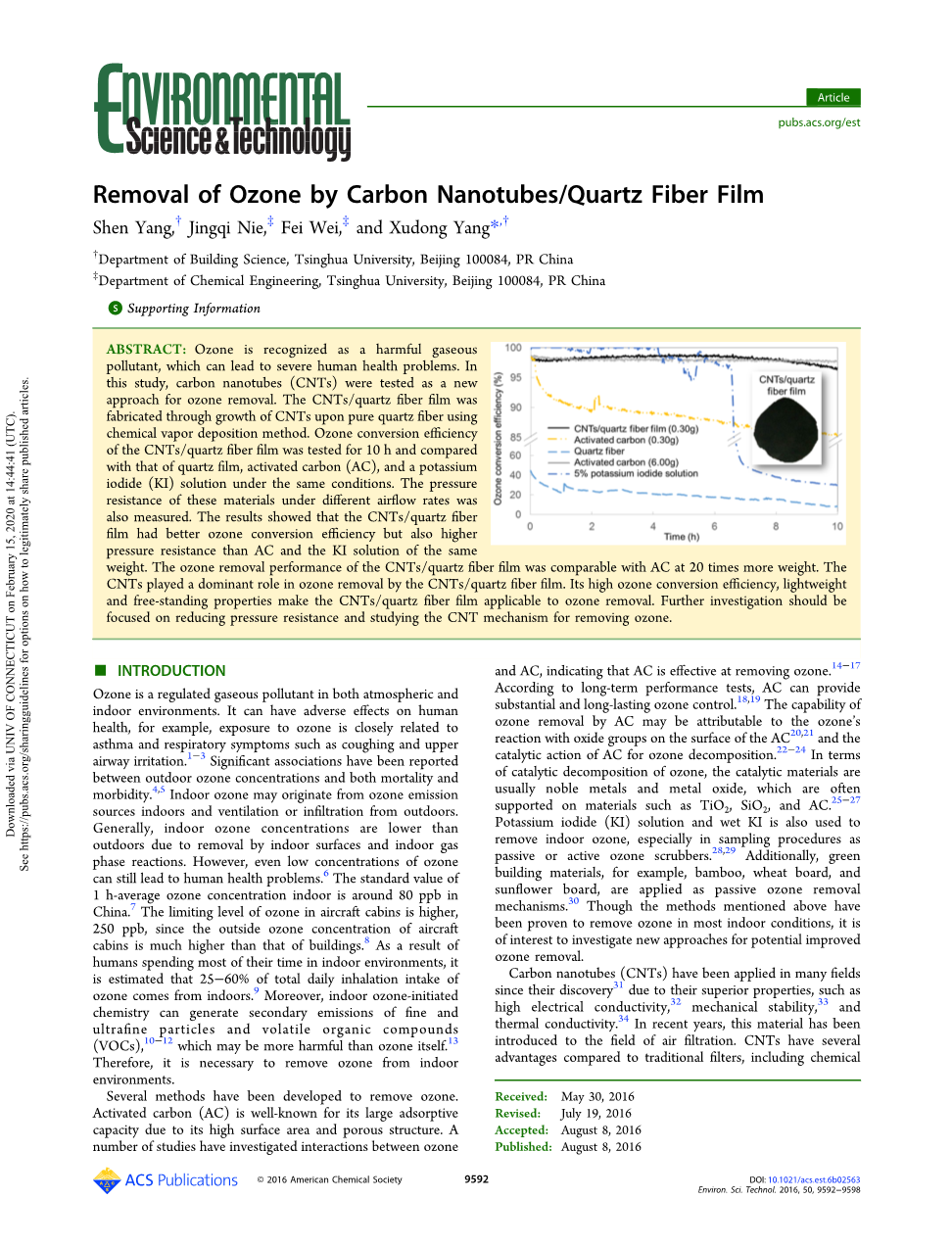 通过碳纳米管/石英纤维薄膜去除臭氧外文翻译资料