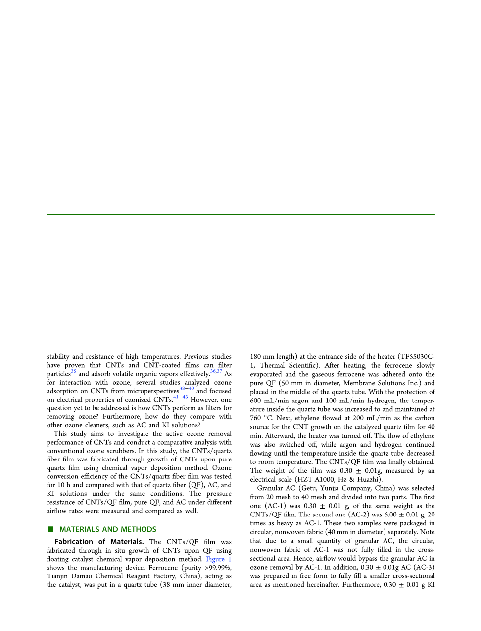 自从碳纳米管已经被应用在许多领域由于他们的超级属性像高导电性,机械稳定性和导热性。近年来,这种材料已被引入空气过滤领域。与传统的过滤器相比,碳纳米管有几个优点,如化学稳定性和耐高温性上。之前的研究已经证明碳纳米管和碳纳米管涂膜能有效过滤颗粒,吸附挥发性有机气体。至于和臭氧的相互作用,几个研究从微观角度分析了碳纳米管对臭氧的吸附,研究集中在臭氧化碳纳米管的电学属性。然而有一个问题还没有解决,那就是碳纳米管是如何作为过滤器来去除臭氧的?再进一步,它们和其他臭氧清除剂像活性炭和碘化钾溶液相比表现如何?