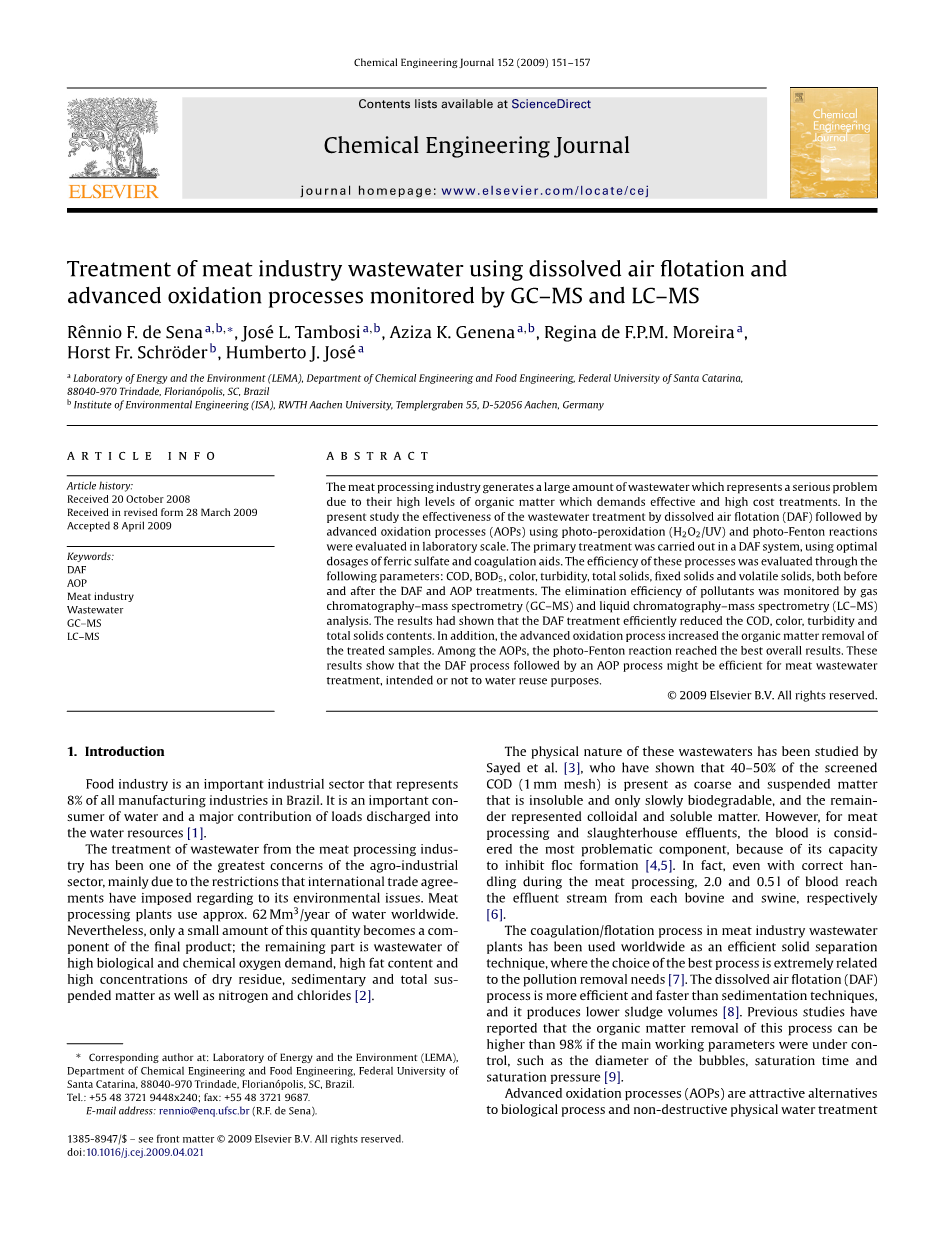 关键词:DAF AOP 肉类工业 GC–MS LC–MS