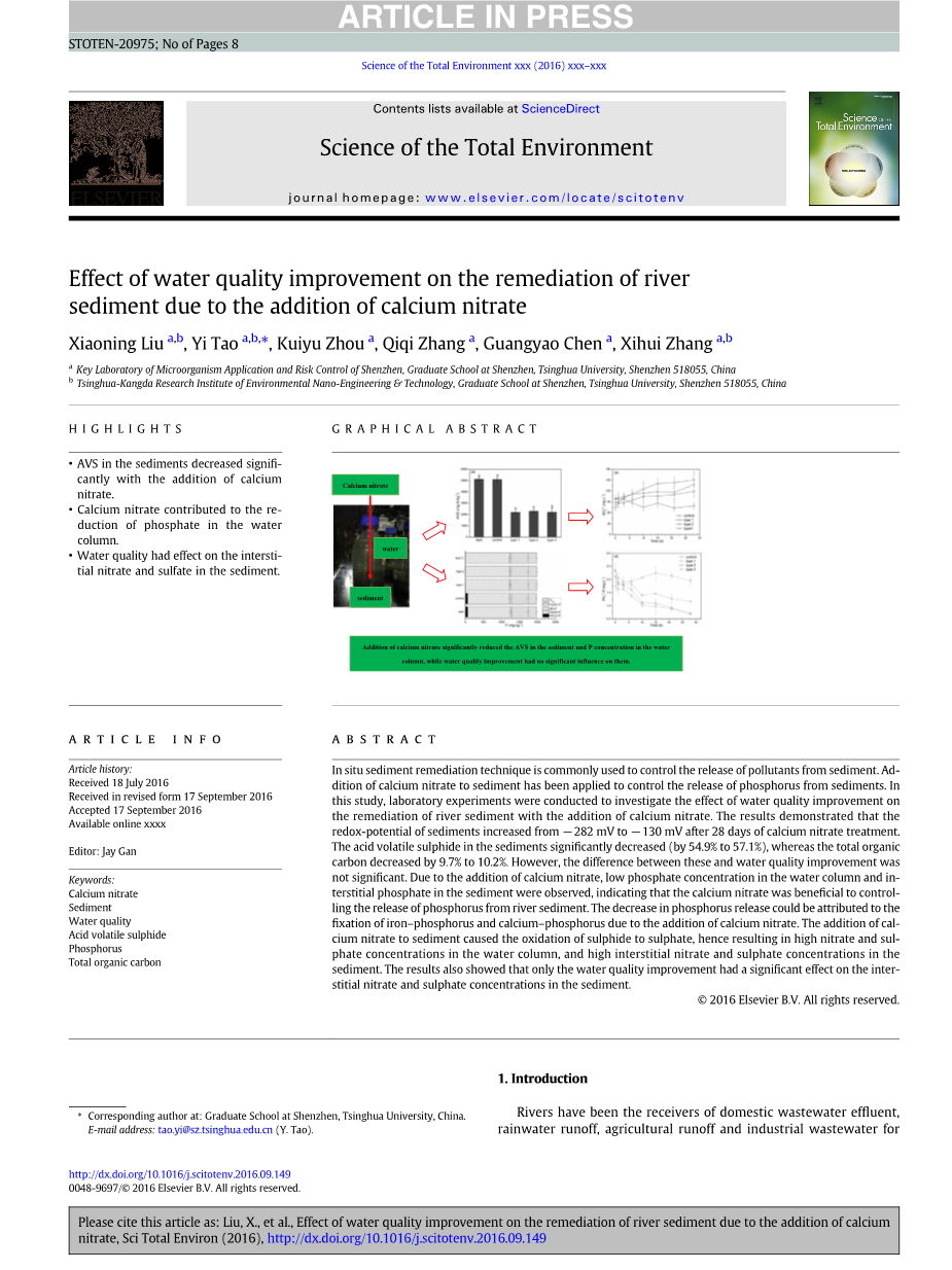 添加硝酸钙修复河流沉积物对水质改善的影响外文翻译资料