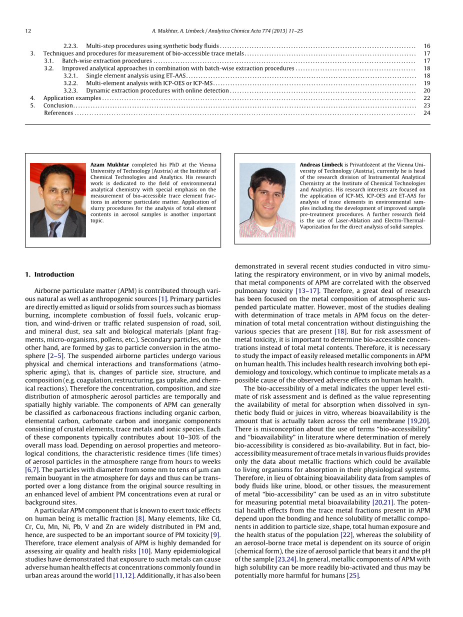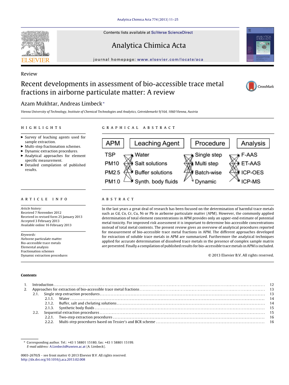 本综述第一次全面调查了可用于测定大气颗粒物中生物可利用的微量重金属成分的方法,包括对于常用浸出过程的描述以及用于对衍生样品提取物进行分析所应用的测量技术。此外,对于迄今为止已发表文献的汇总结果也在本综述中进行了展示。