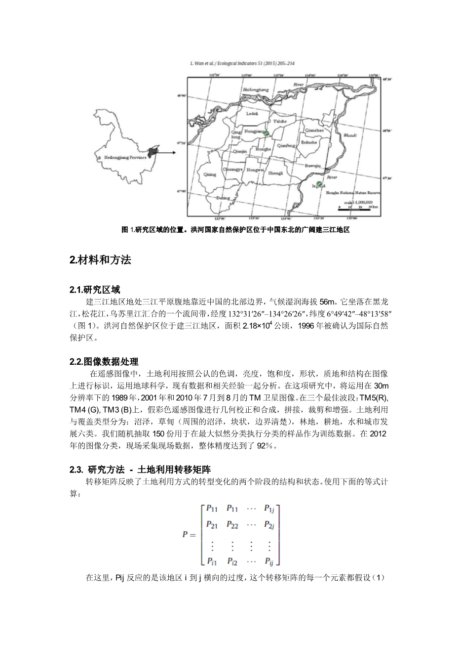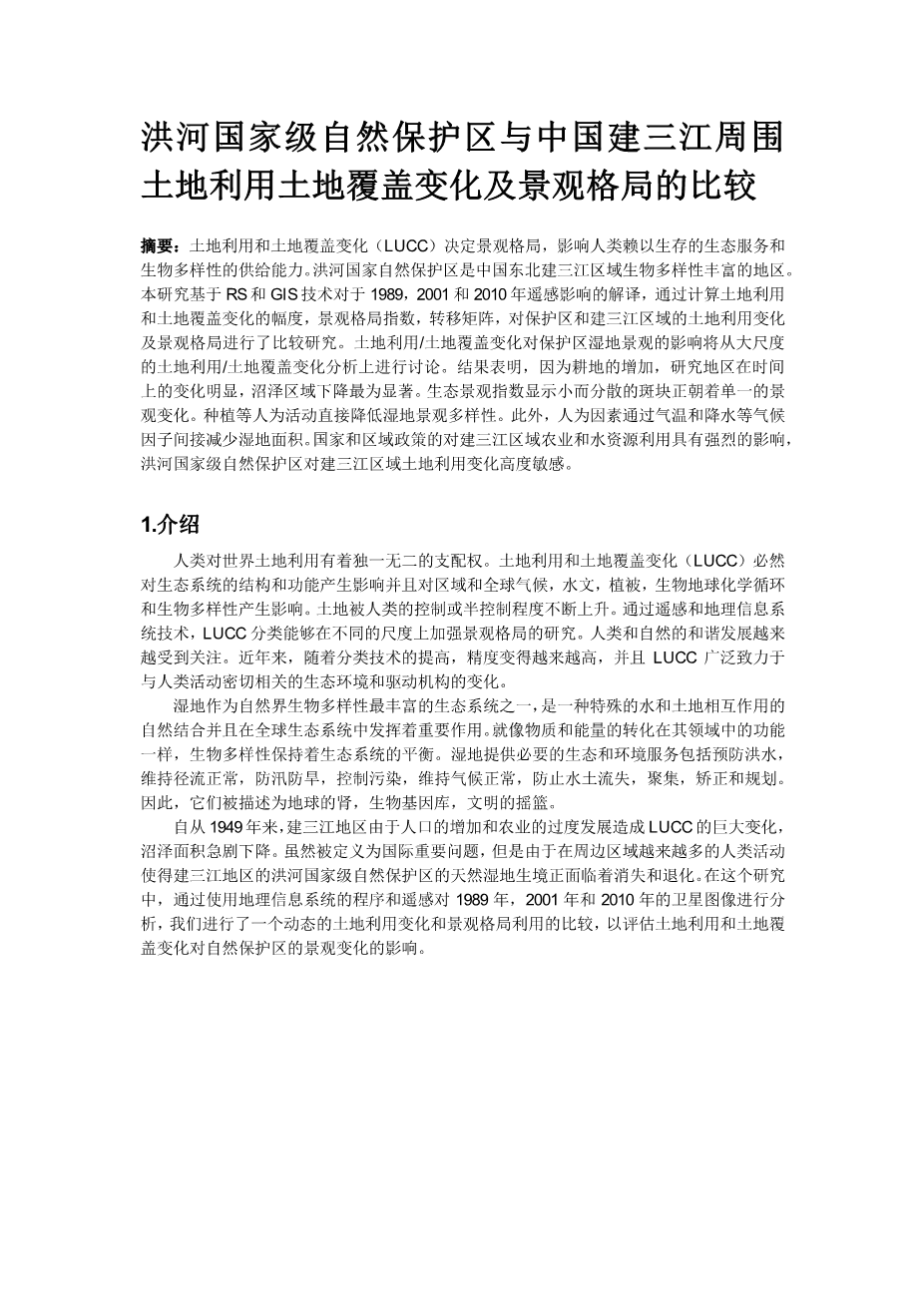 洪河国家级自然保护区与中国建三江周围土地利用土地覆盖变化及景观格局的比较外文翻译资料