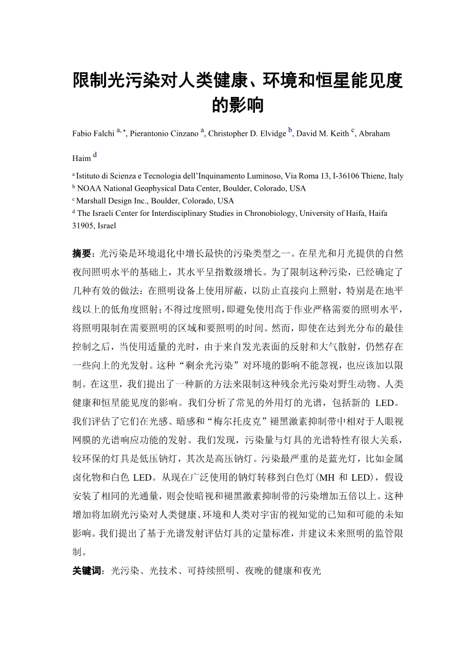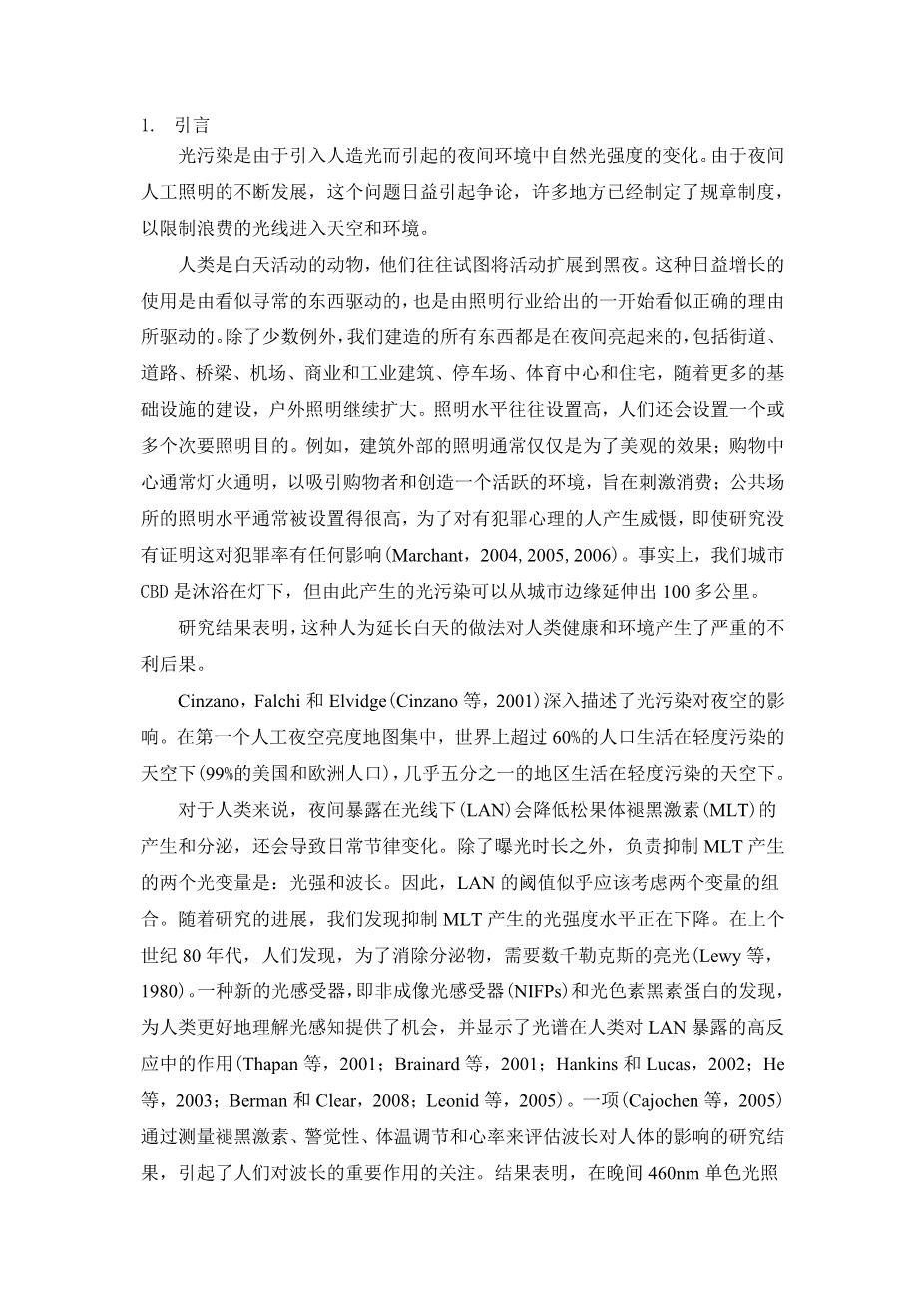 限制光污染对人类健康、环境和恒星能见度 的影响外文翻译资料