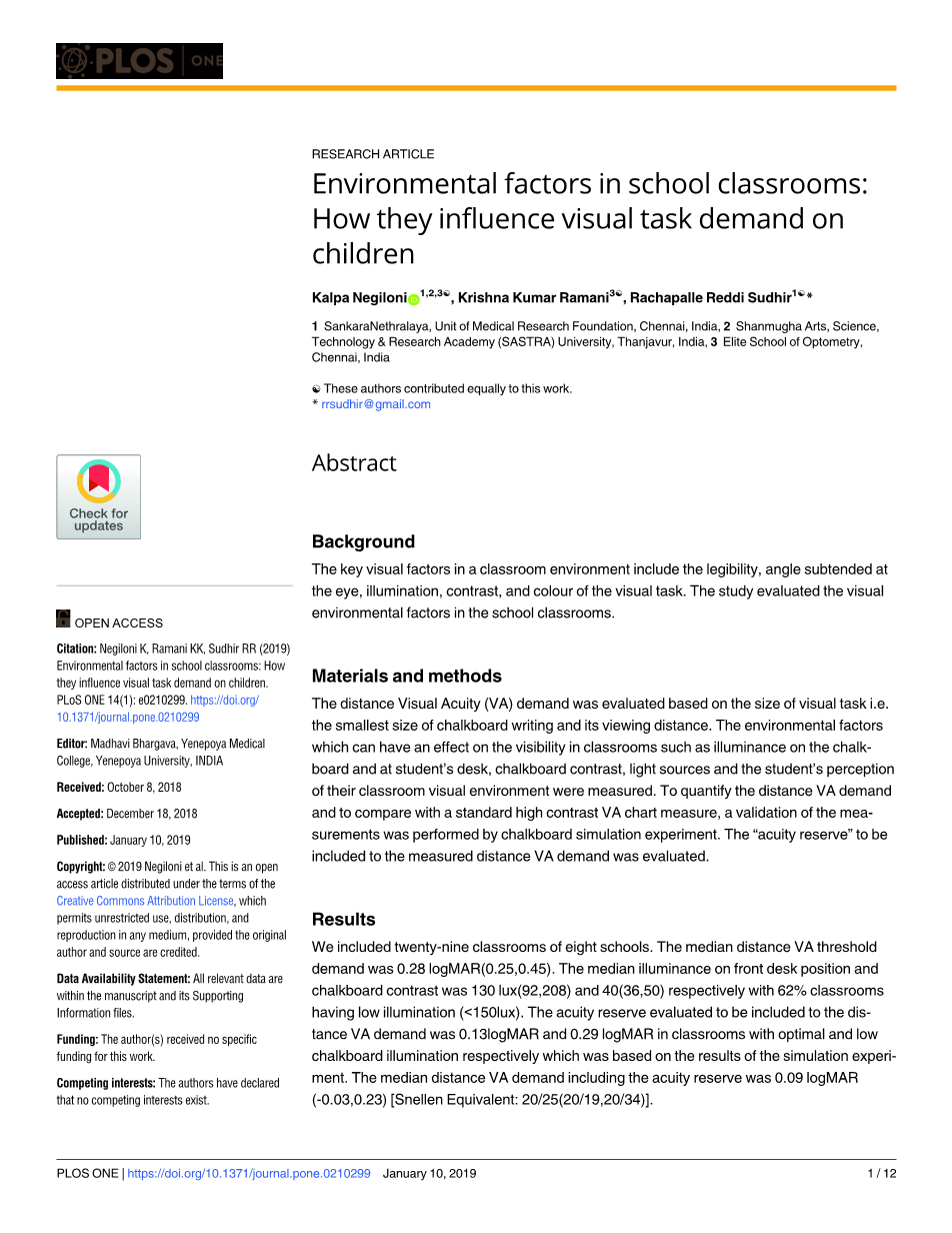 单位1 SankaraNethralaya, Unit of Medical Research Foundation, Chennai, India, 2 Shanmugha Arts, Science,