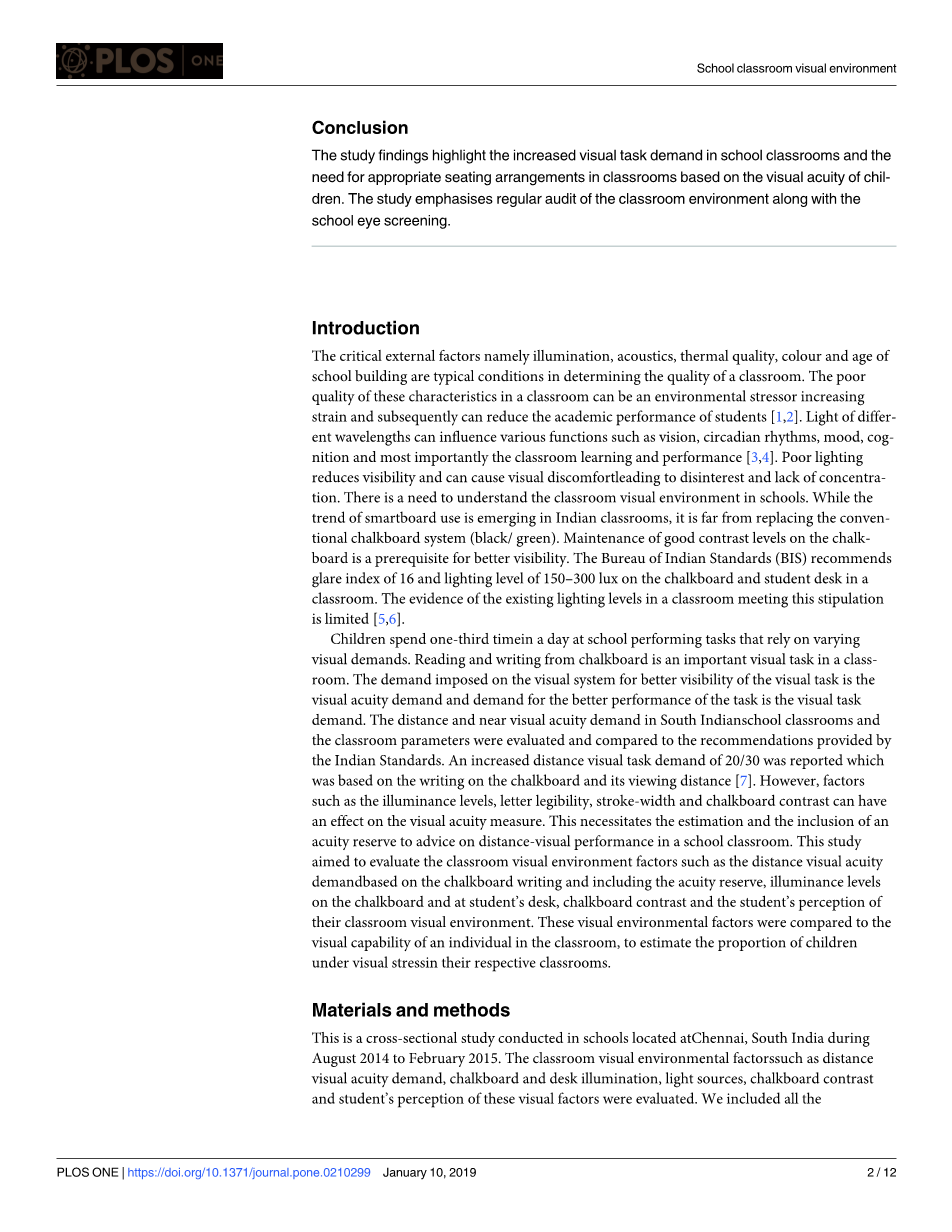 关键的外部因素,即照明、声学、热质量、颜色和学校建筑的年龄,是决定教室质量的典型条件。教室中这些特征的质量差可能是一种环境压力源,增加了压力,进而会降低学生的学习成绩[1,2]。不同波长的光可以影响各种功能,如视觉、昼夜节律、情绪、认知,最重要的是影响课堂学习和表现[3,4]。光线不足会降低可见度,并可能导致视觉不适,导致不感兴趣和注意力不足。有必要了解学校的课堂视觉环境。虽然智能板的使用趋势正在印度教室中兴起,但它远没有取代传统的黑板系统(黑色绿色)。在黑板上保持良好的对比度是提高能见度的先决条件。印度标准局(BIS)建议教室黑板和学生桌上的眩光指数为16,照明水平为150–300勒克斯。教室会议中现有照明水平的证据本规定是有限的[5,6] 。