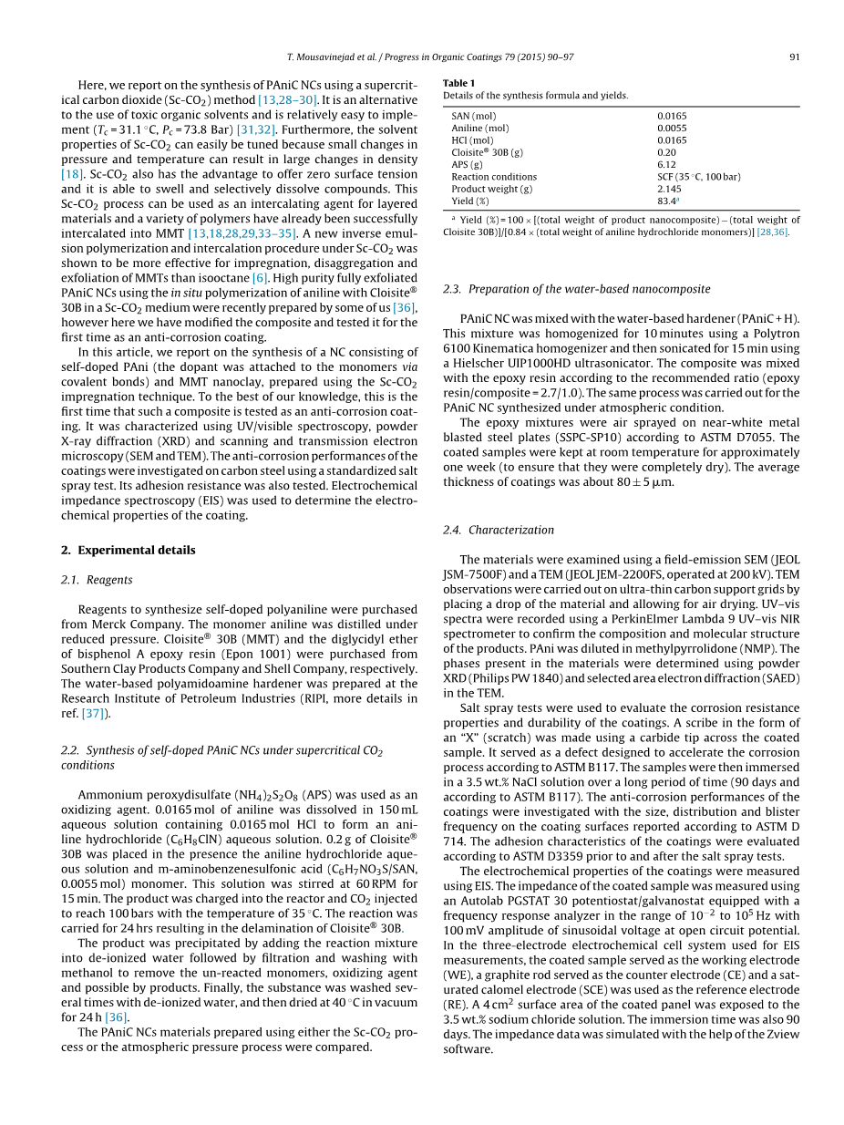 一种用自掺杂聚苯胺粘土在超临界CO2条件下合成的防腐水性环氧涂料外文翻译资料