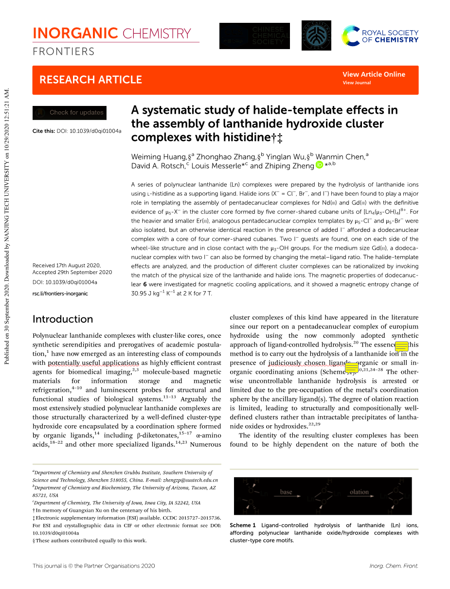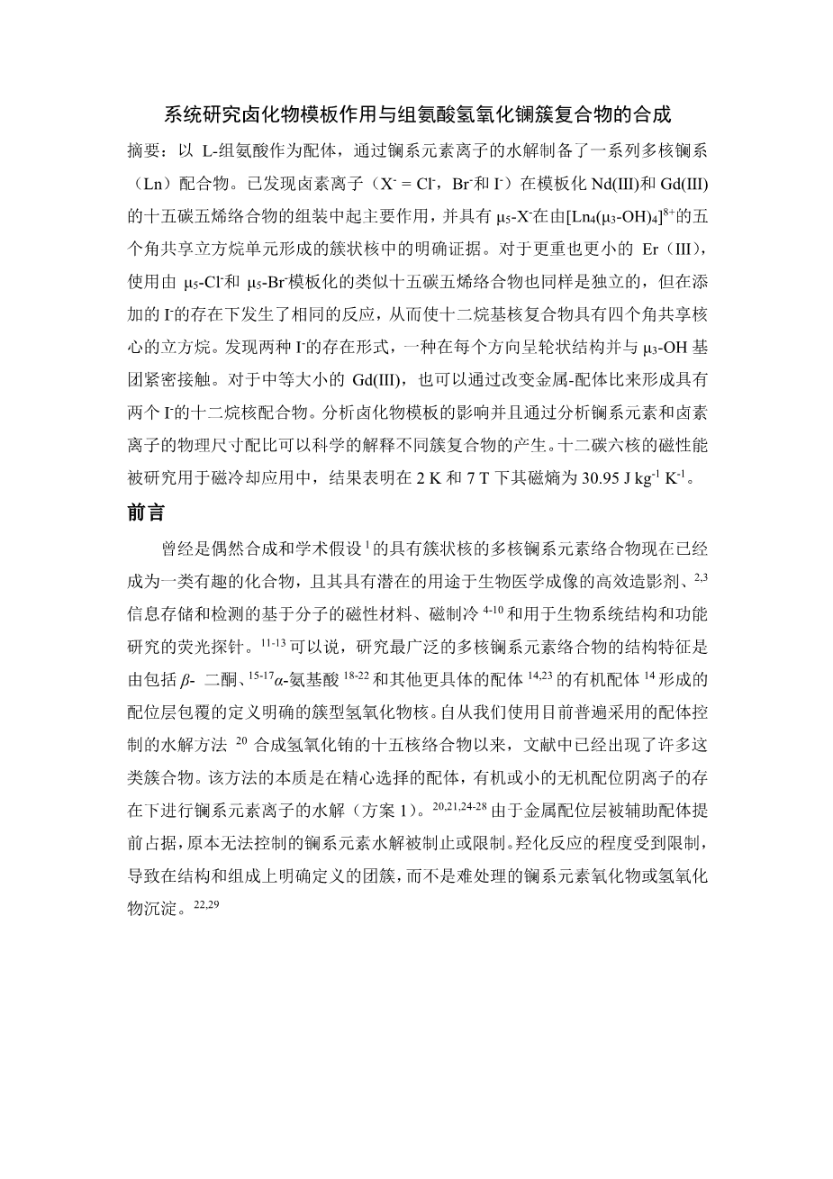 系统研究卤化物模板作用与组氨酸氢氧化镧簇复合物的合成外文翻译资料