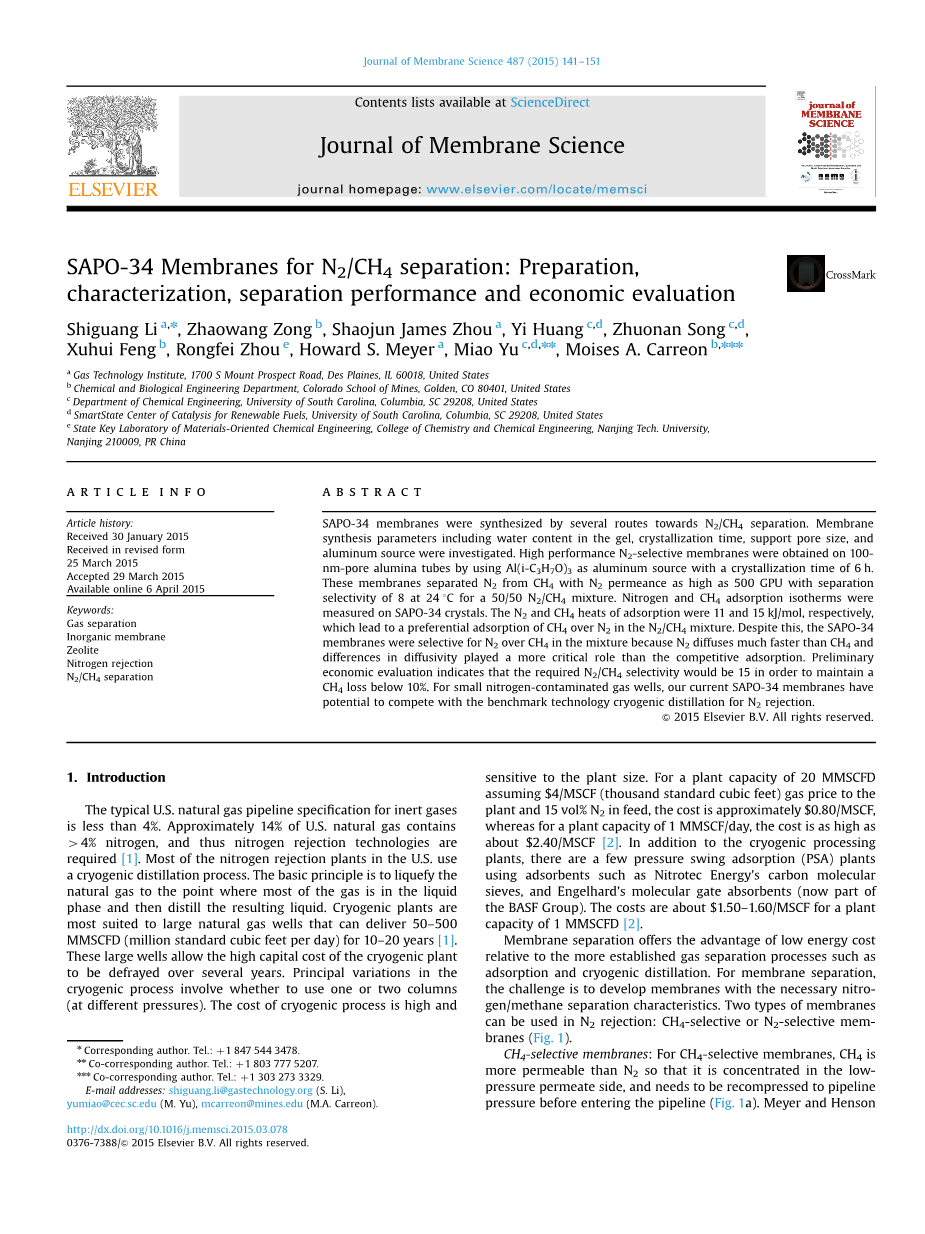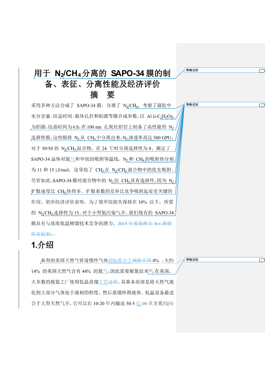 |CHA型分子筛膜在氮气/甲烷体系的分离性能外文翻译资料