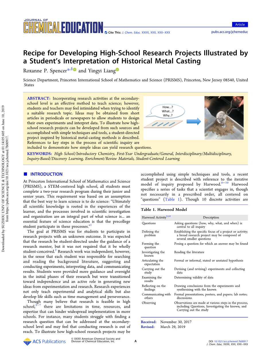 将研究活动纳入中学教学是教授科学的有效方法;但是,学生和老师在尝试确定一个合适的研究主题时可能会感到害怕。老师可以从期刊或报纸上的短篇文章中获得想法,以使学生自己设计实验并解释试验数据。为了说明如何从此类资源中开发高中研究项目并通过简单的技术和工具完成这些研究,本文描述了受历史上的金属铸造方法启发的以学生为主导的项目。科学探究过程中关键步骤的参考是包括演示简单的想法如何产生值得研究的问题。