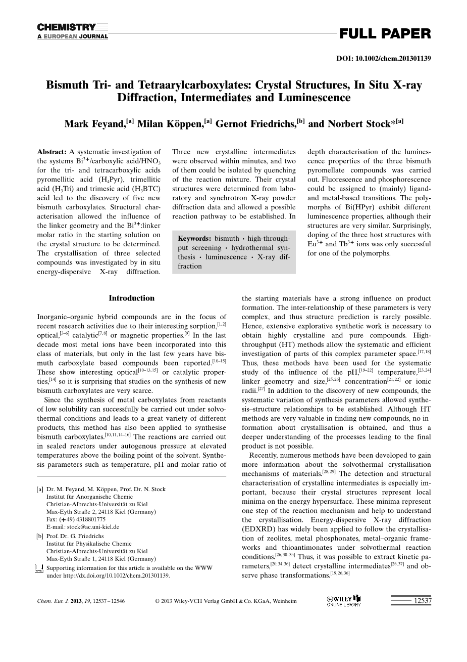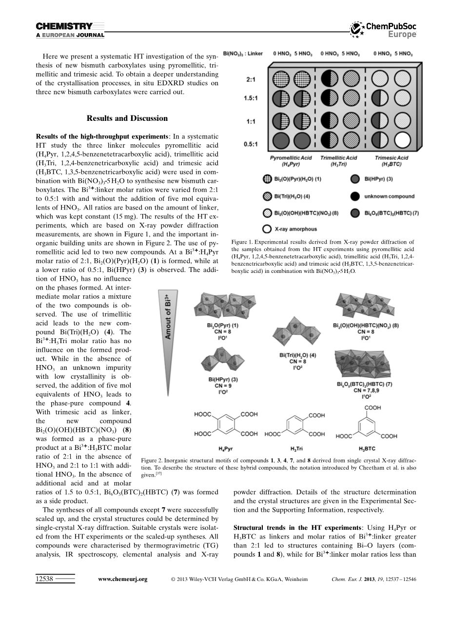 三羧酸铋和四芳基羧酸铋:晶体结构,原位x射线衍射,中间体和发光外文翻译资料