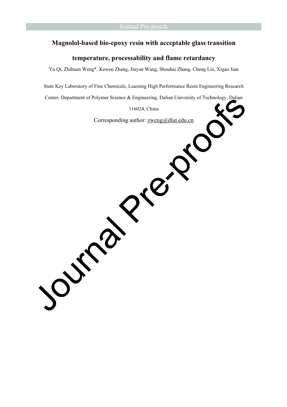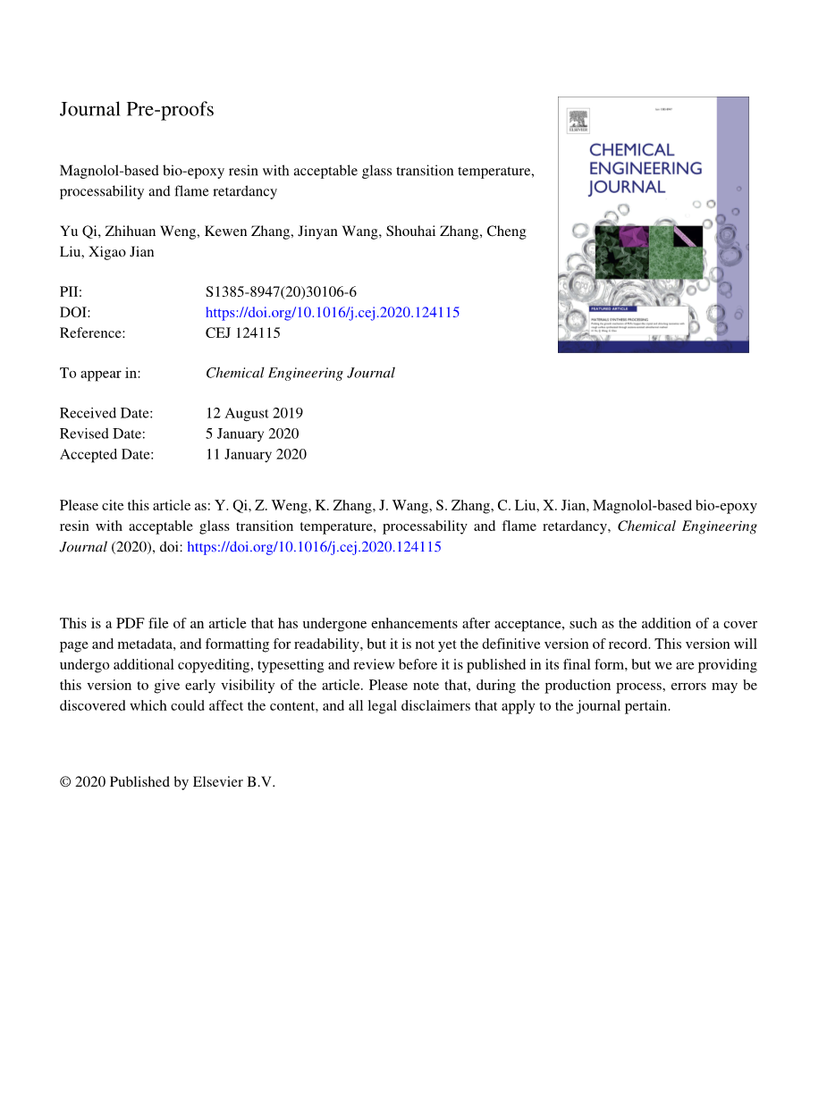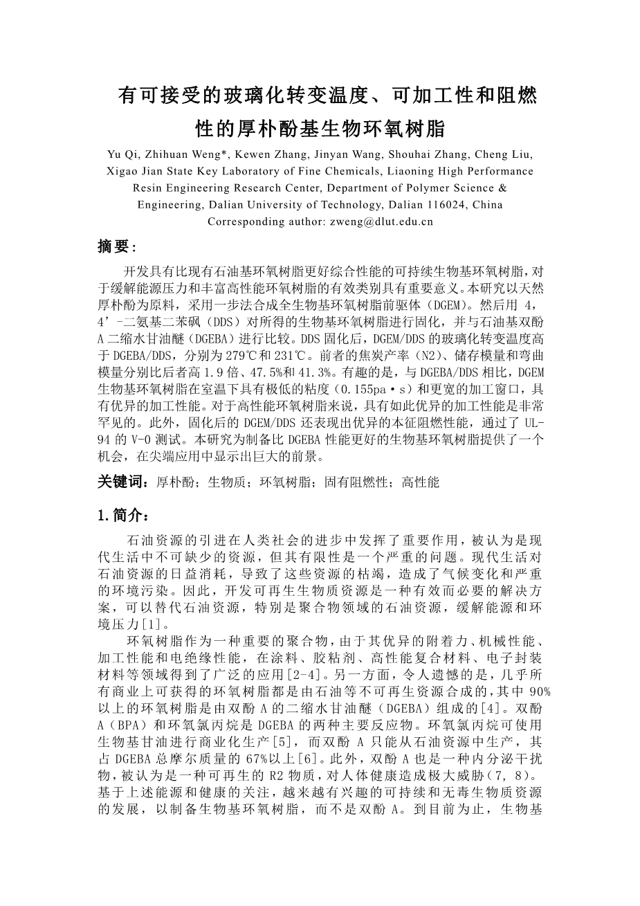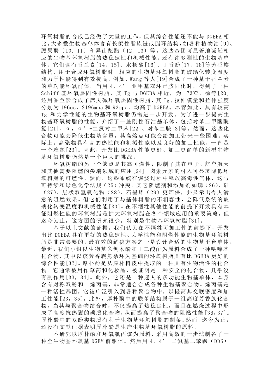 有可接受的玻璃化转变温度、可加工性和阻燃性的厚朴酚基生物环氧树脂外文翻译资料