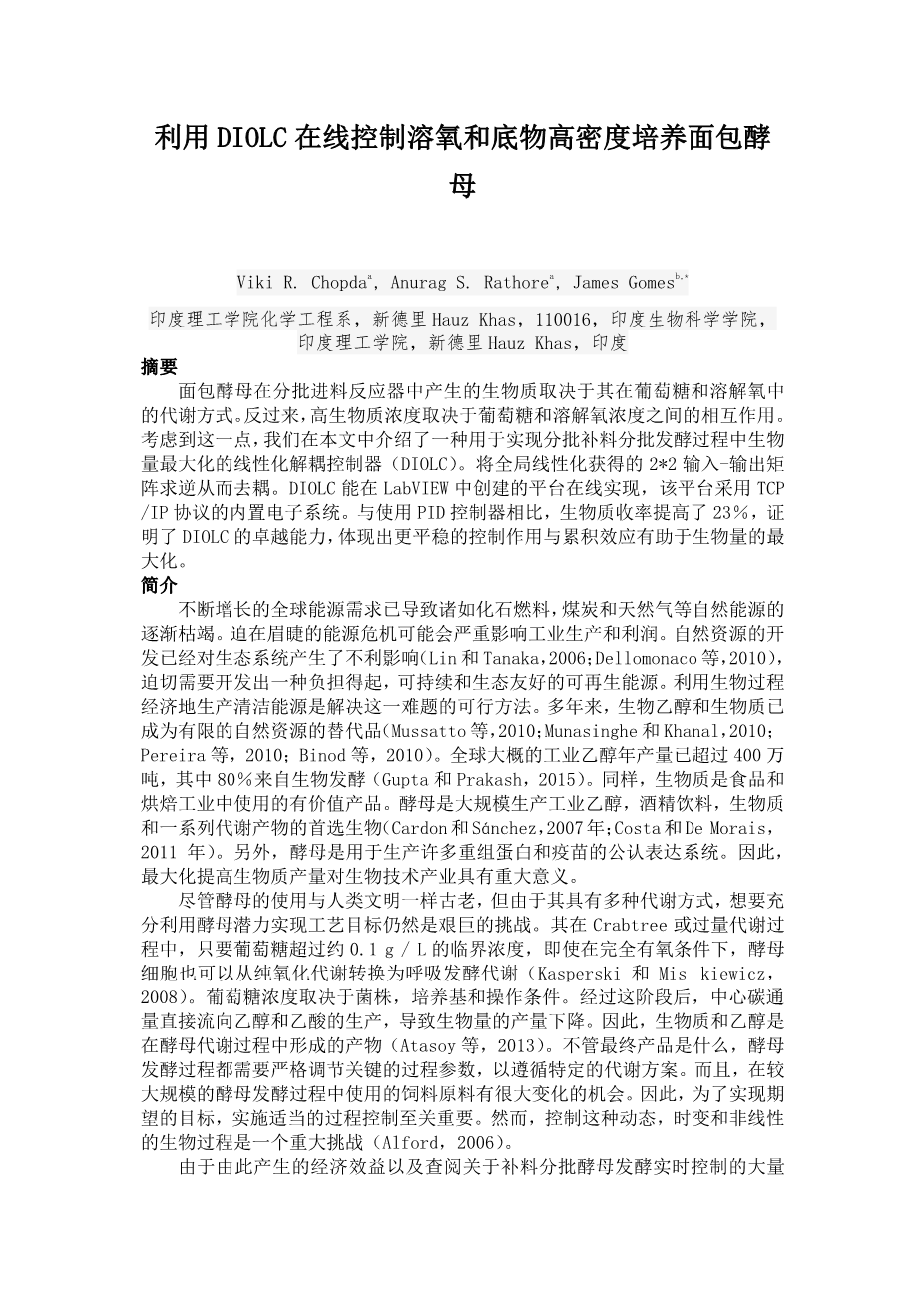 利用DIOLC在线控制溶氧和底物高密度培养面包酵母外文翻译资料