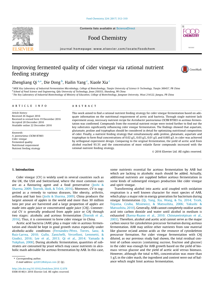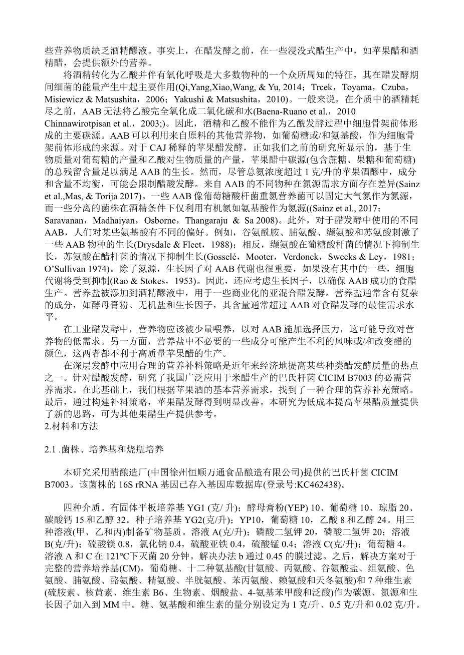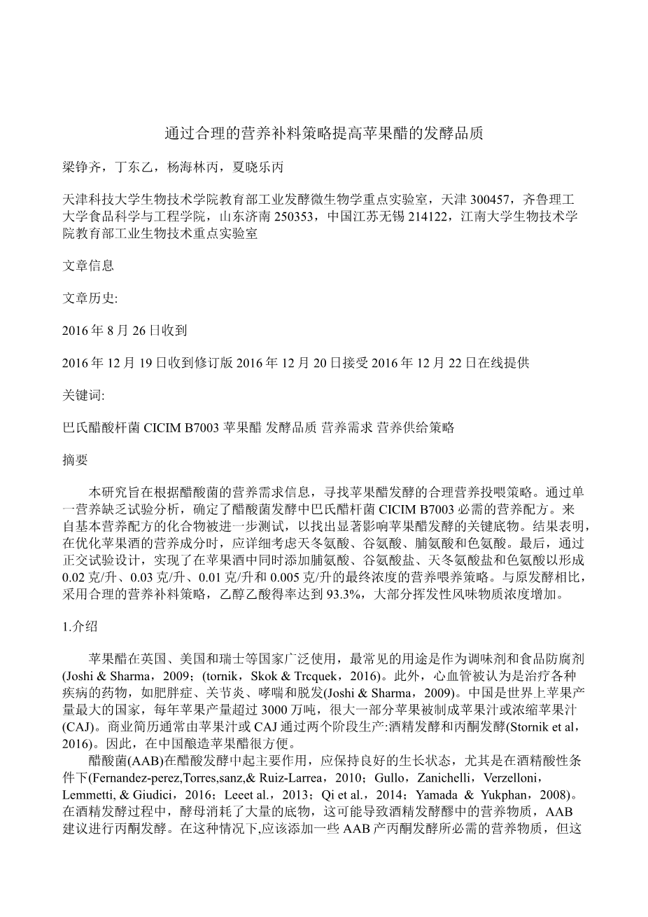 通过合理的营养补料策略提高苹果醋的发酵品质外文翻译资料
