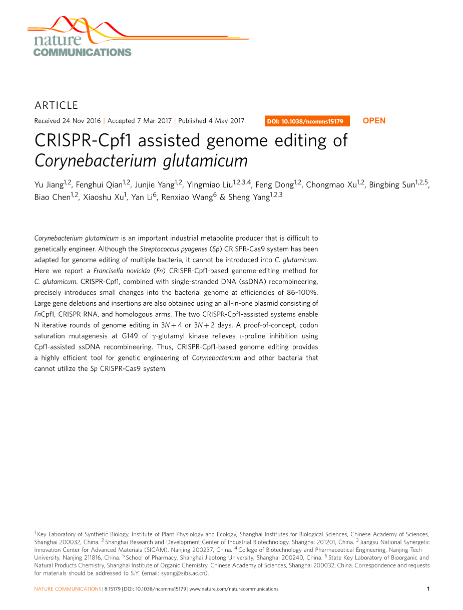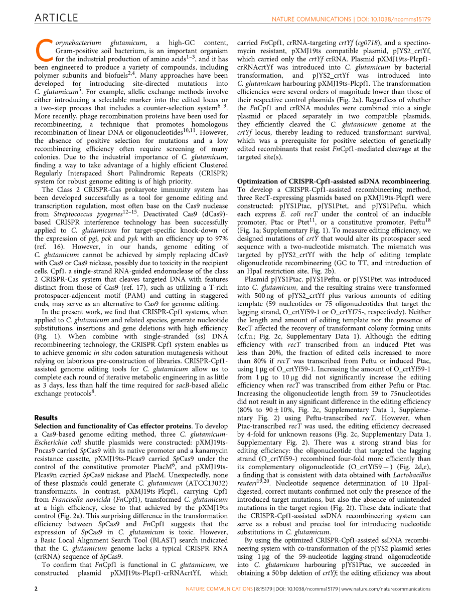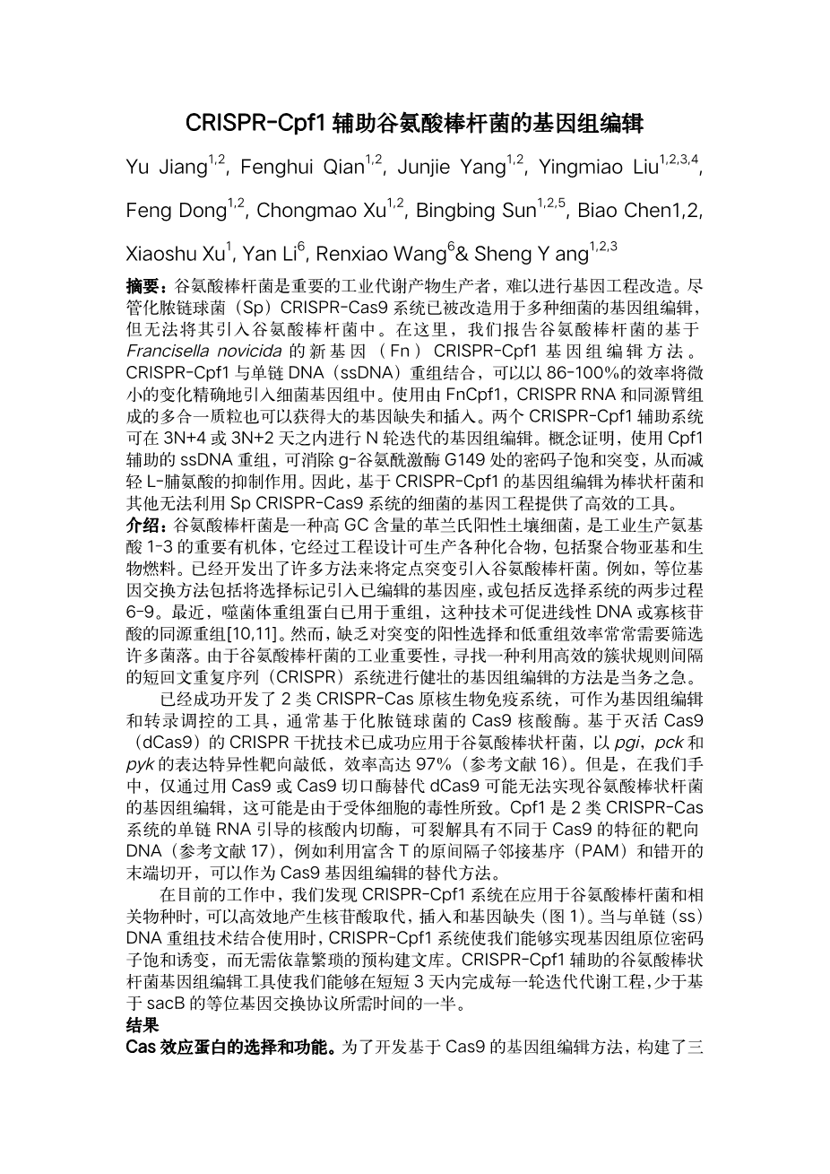 CRISPR-Cpf1辅助谷氨酸棒杆菌的基因组编辑外文翻译资料