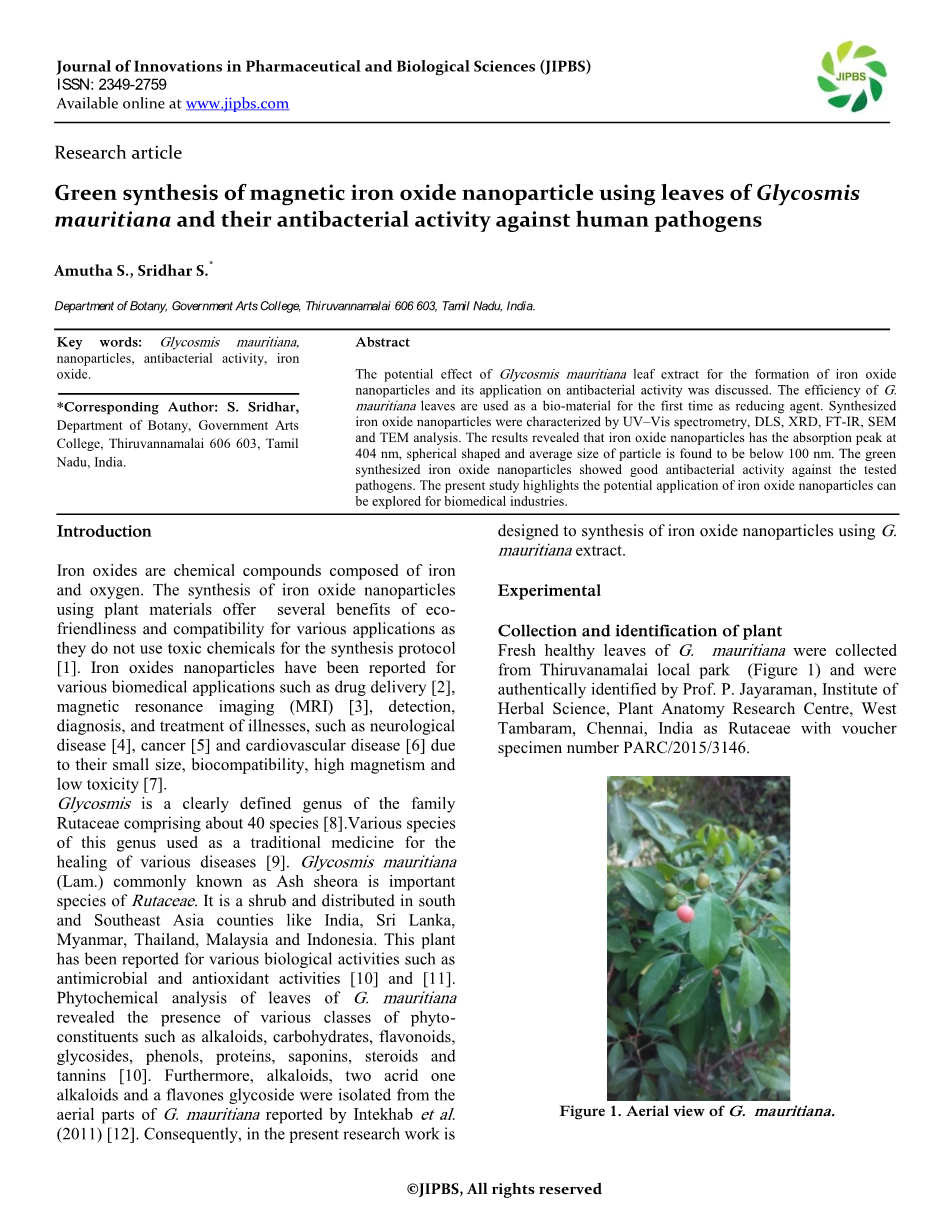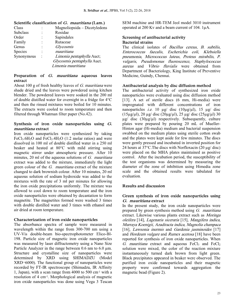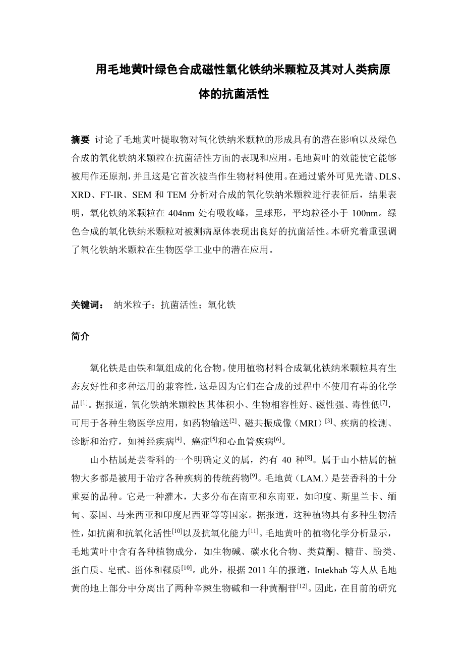 用毛地黄叶绿色合成磁性氧化铁纳米颗粒及其对人类病原体的抗菌活性外文翻译资料