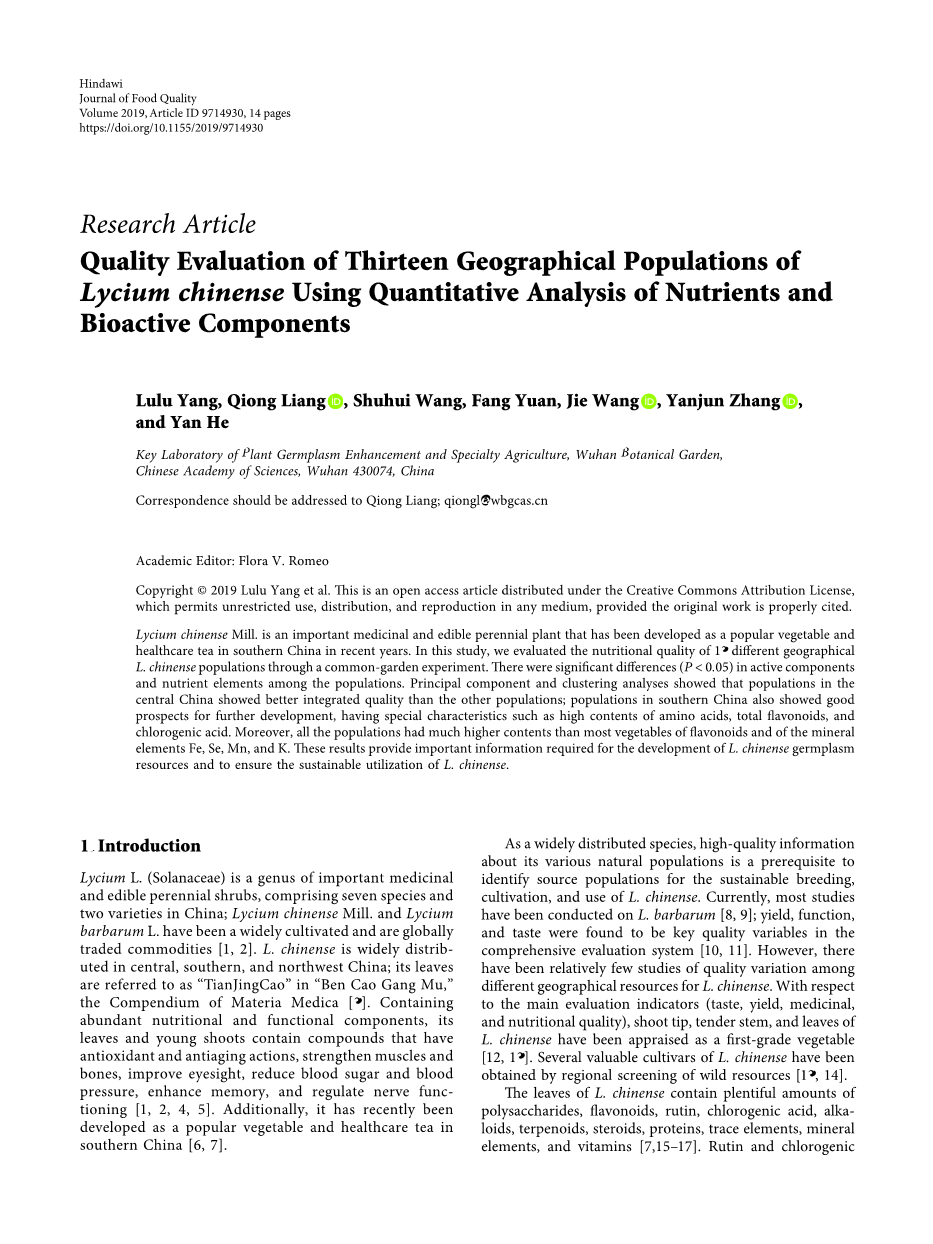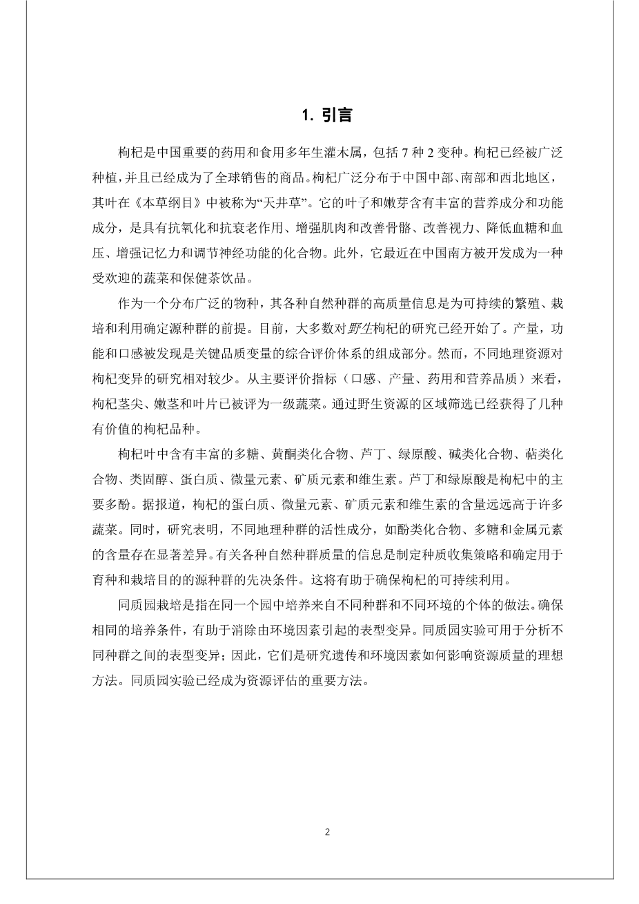 利用营养成分和生物活性成分定量分析评价13个地理种群的枸杞的品质外文翻译资料