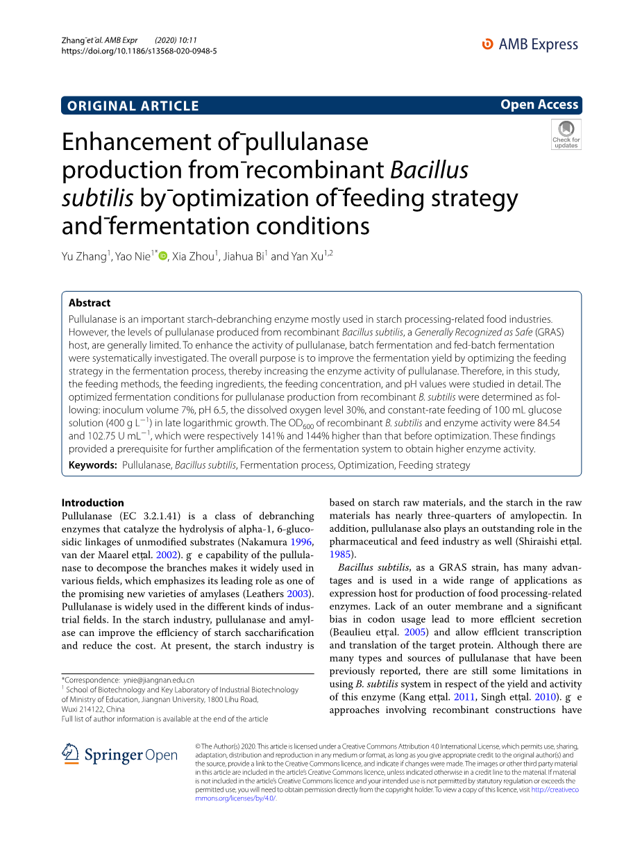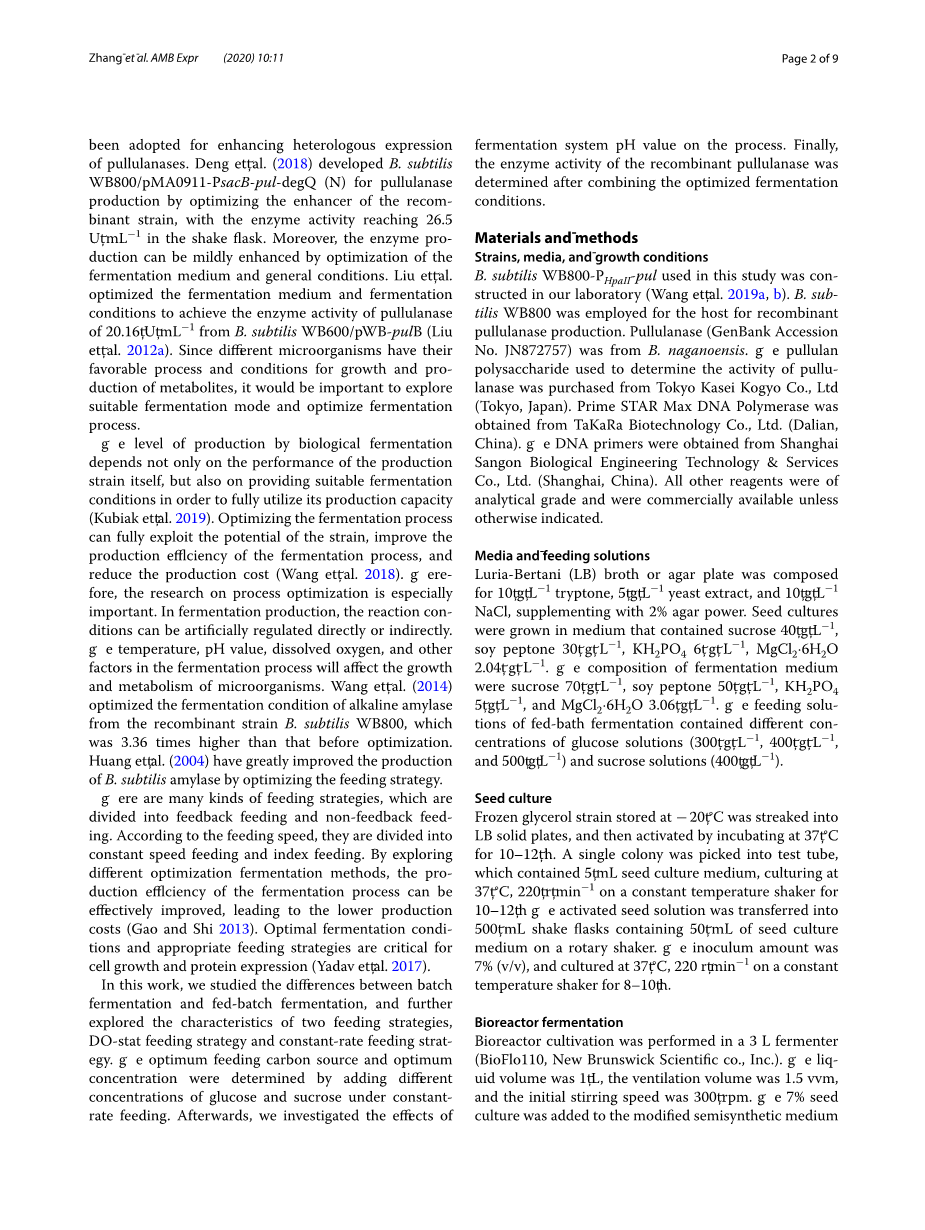 通过优化补料方式和发酵条件,提高重组枯草芽孢杆菌的普鲁兰酶产量外文翻译资料