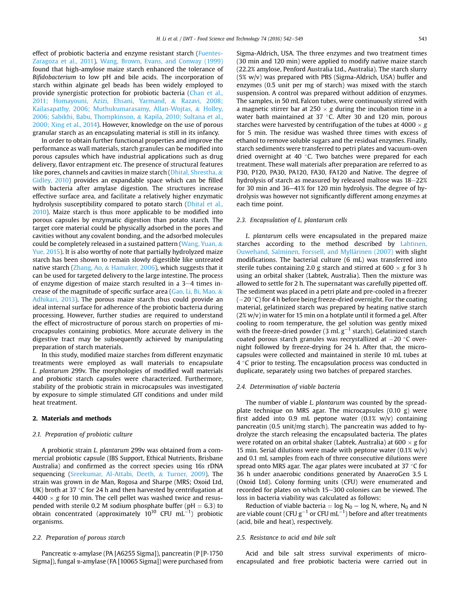 多孔玉米淀粉中乳酸杆菌的封装研究外文翻译资料