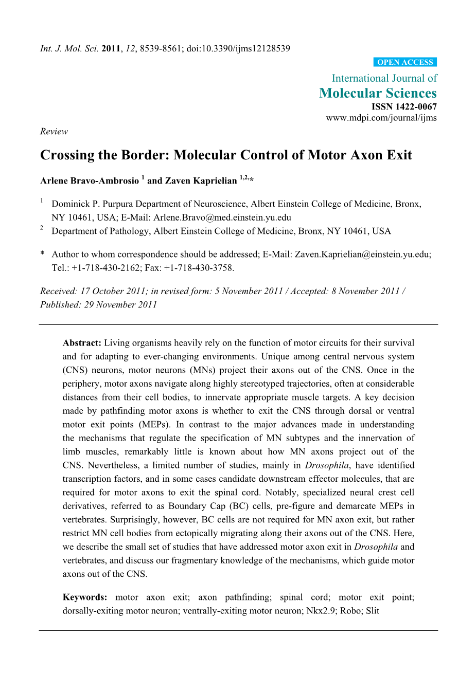 国际分子科学学报J.。2011,12,8539-8561;DOI:10.3390/ijms12128539