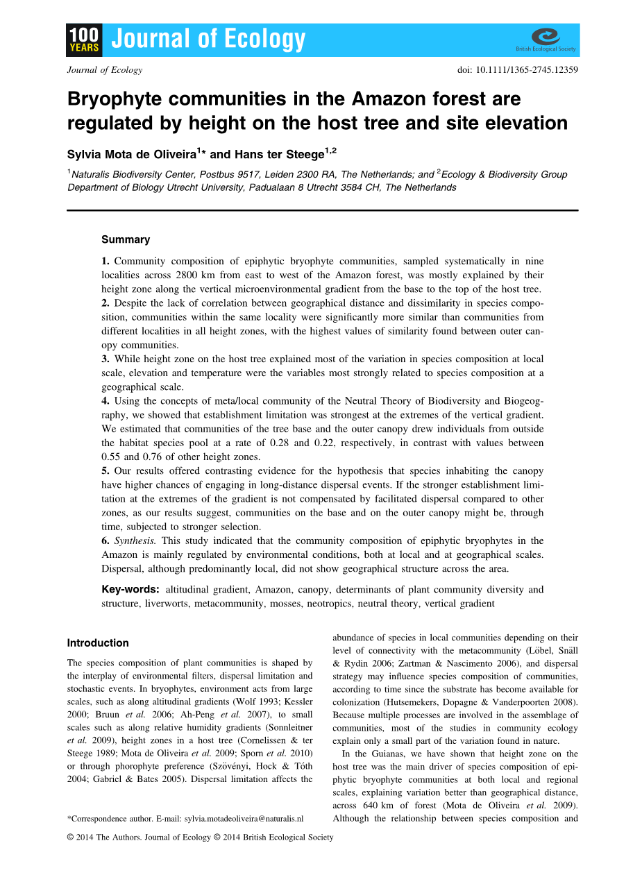 原文作者 Sylvia Mota de Oliveira1* and Hans ter Steege1,2