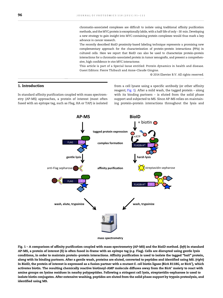 c-MYC(MYC)致癌基因在超过50%的人类癌症中被放松管制。 然而,这种蛋白质在正常细胞生物学和肿瘤进展中的作用仍然不太清楚,部分原因是MYC相互作用的表达相对较差。 MYC蛋白质异常不稳定(半衰期仅为30分钟),大部分MYC与染色质紧密相关,使用标准AP-MS鉴定综合MYC相互作用的方法在技术上具有挑战性。 因此,开发一种新的策略,以了解含MYC的蛋白质复合物,将成为癌症研究的重要进展。