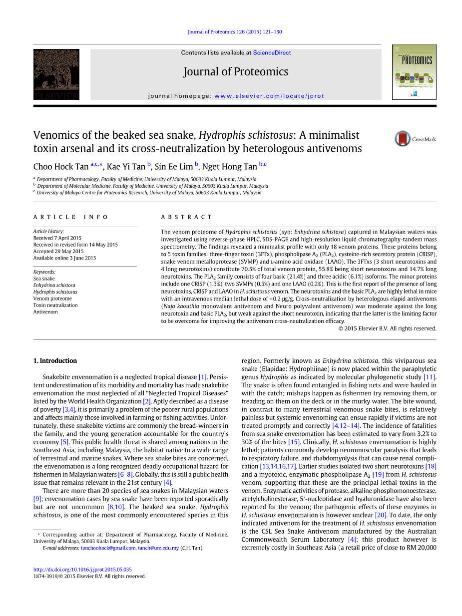 剑吻海蛇(Hydrophis schistosus)蛇毒组:一种极简毒素库及异源抗蛇毒血清对其交叉中和作用外文翻译资料