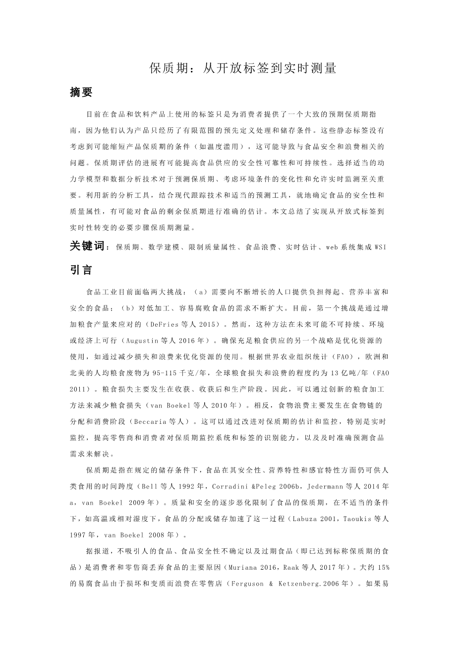 保质期:从开放标签到实时测量外文翻译资料